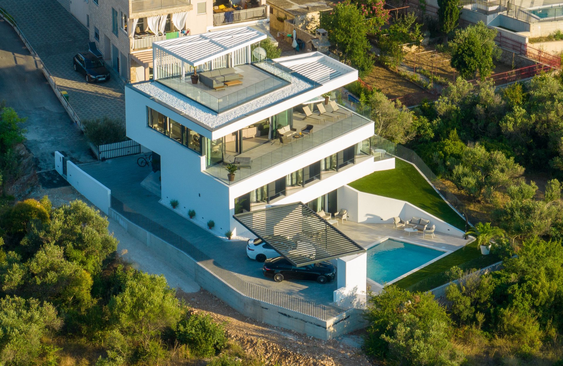 Only 100 meters away from the beauty of the Adriatic Sea, Villa Isola looks like an oasis of luxury and elegance located on the enchanting island of Murter. This Mediterranean gem redefines the concept of elegant living with its flawless design and the surrounding natural splendor.