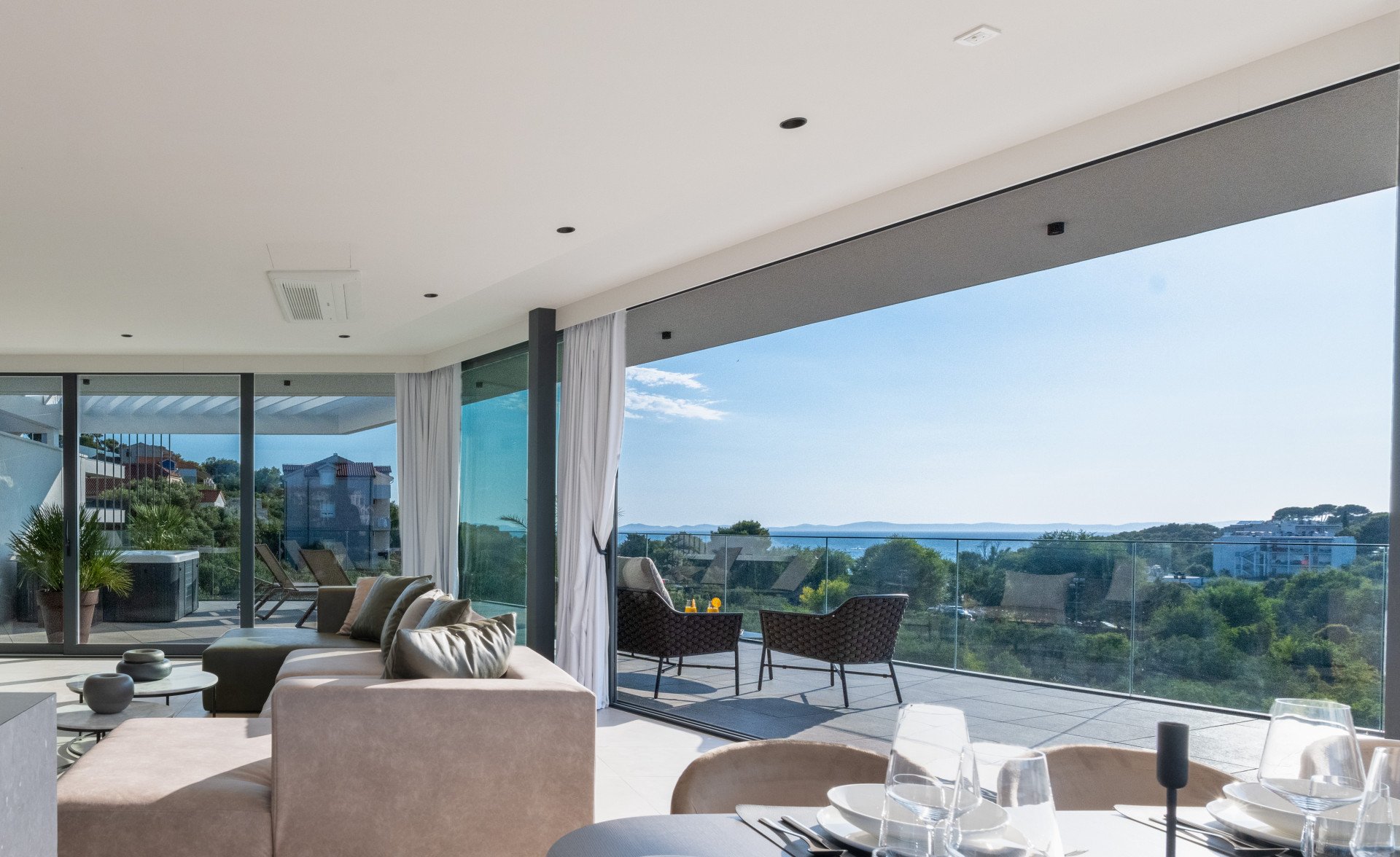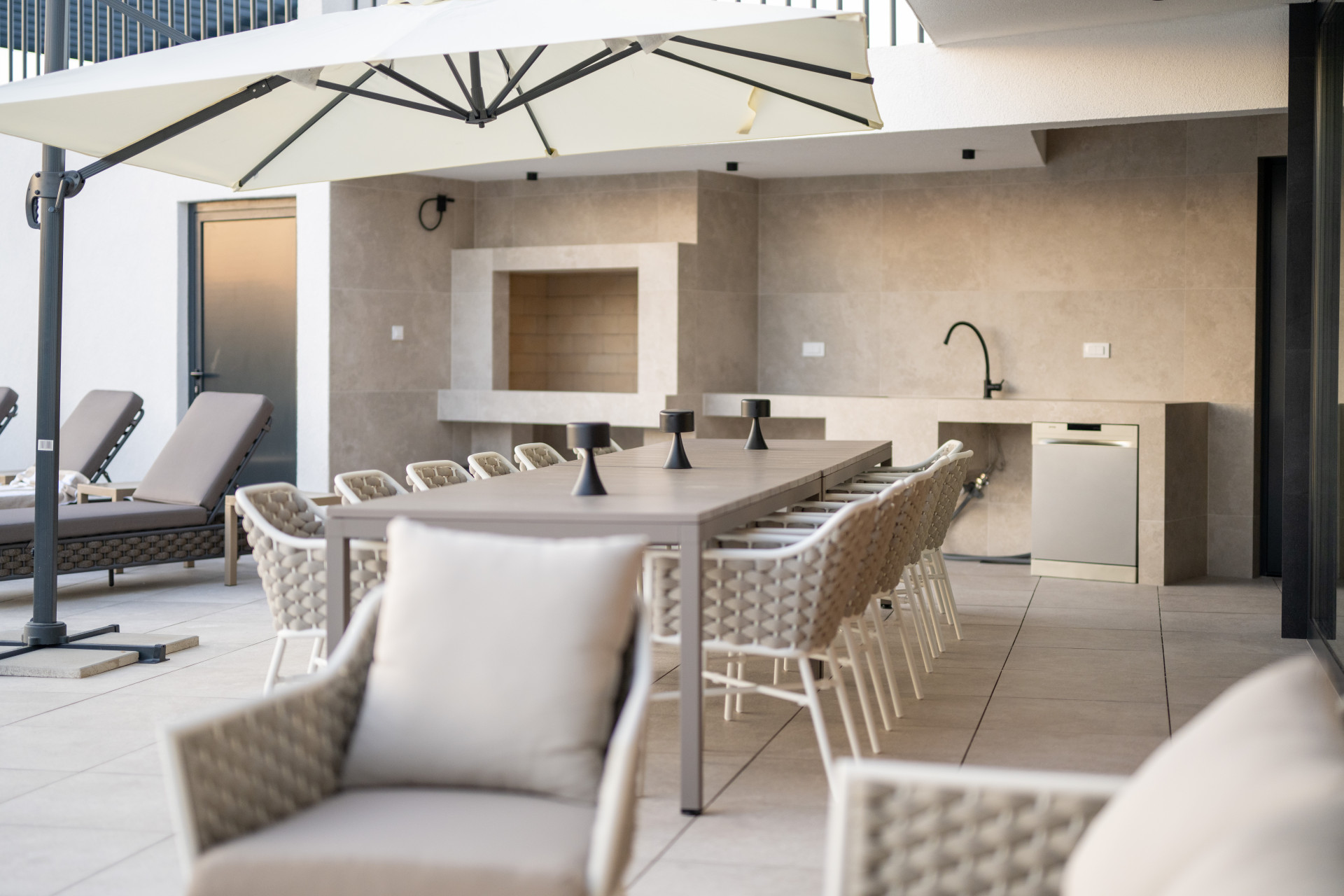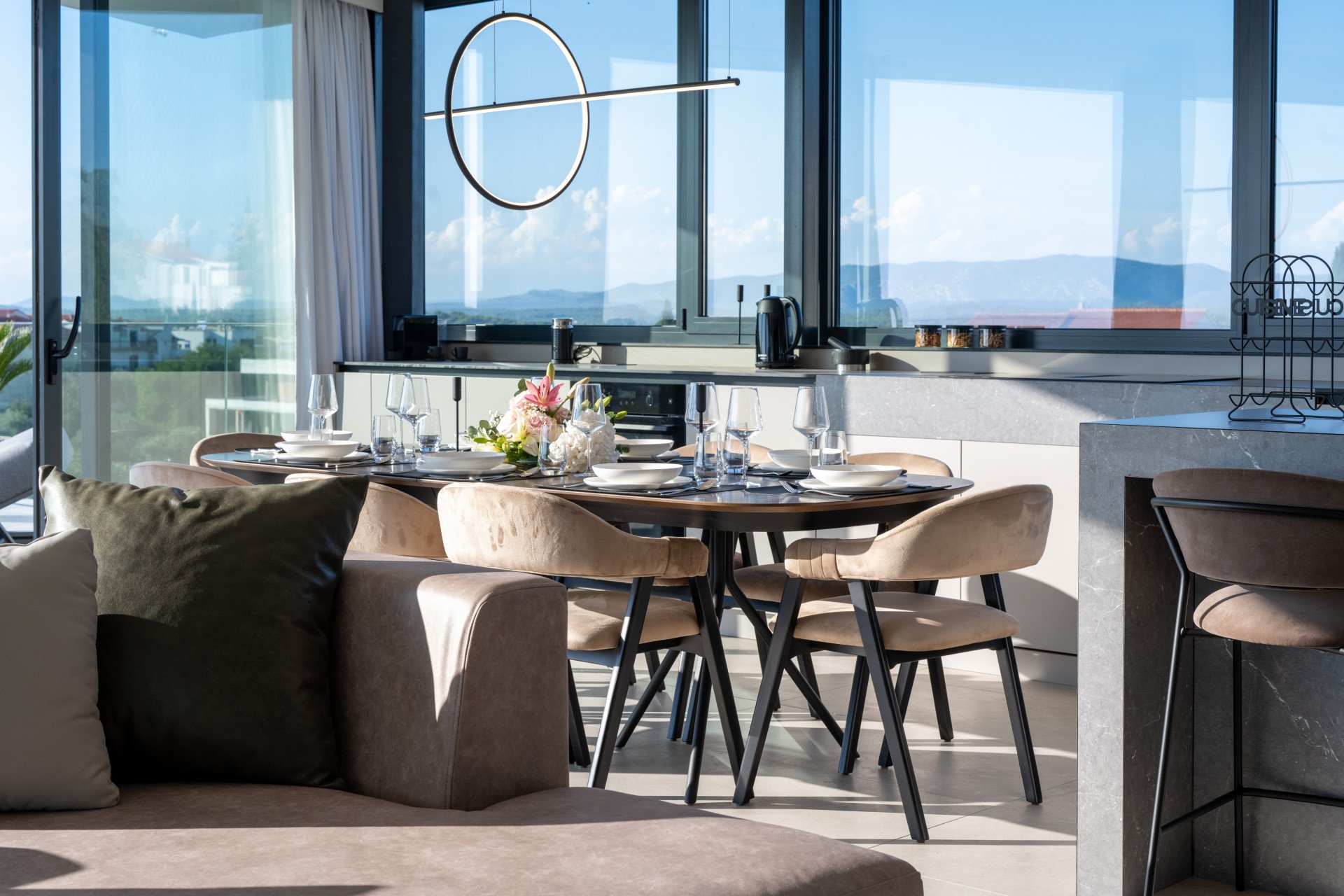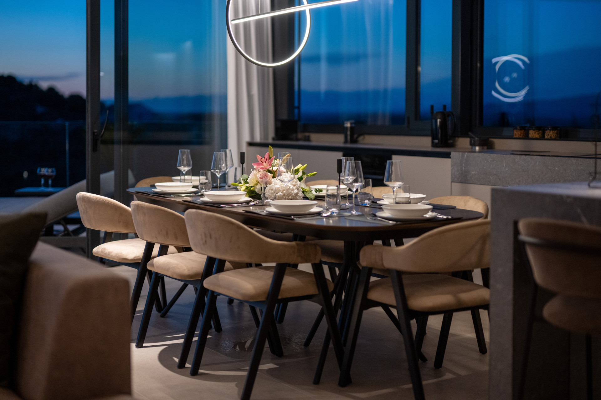 Carefully designed bedrooms, each with a private bathroom, exude harmony in neutral shades. Almost artistically designed, the beautiful living room with large glass openings leading to the spacious terrace gives a feeling of freedom. Try your hand at culinary creations with a fully equipped kitchen and enjoy a sweet feast with an enchanting view of the landscape.