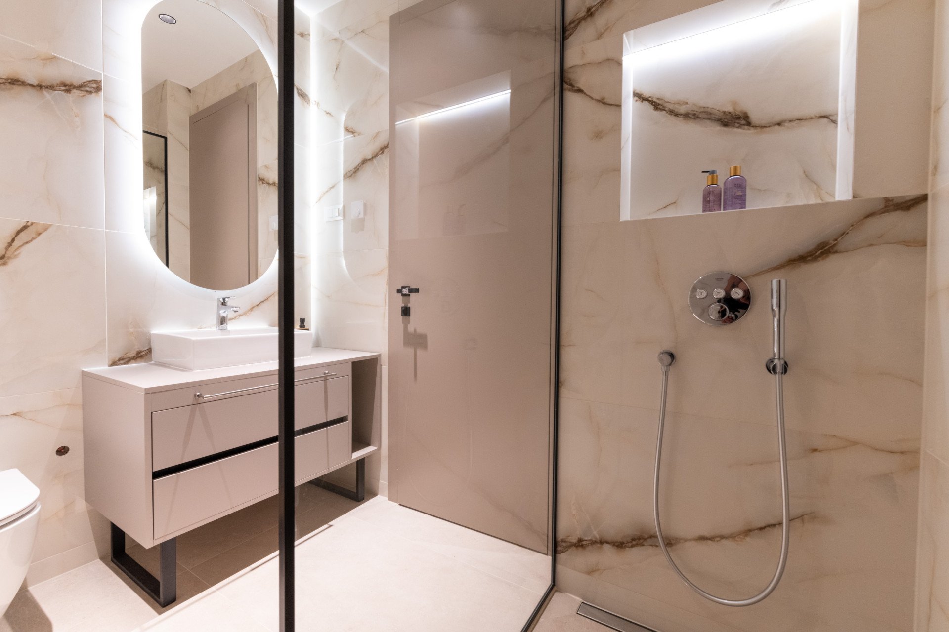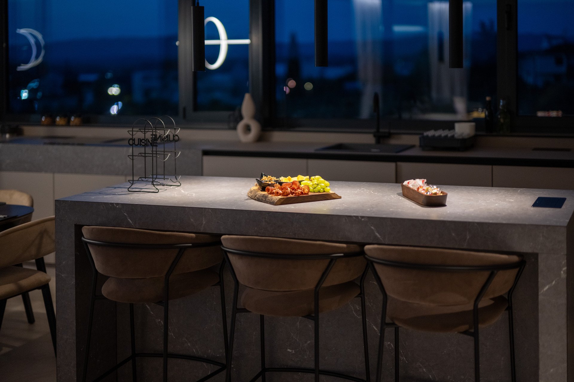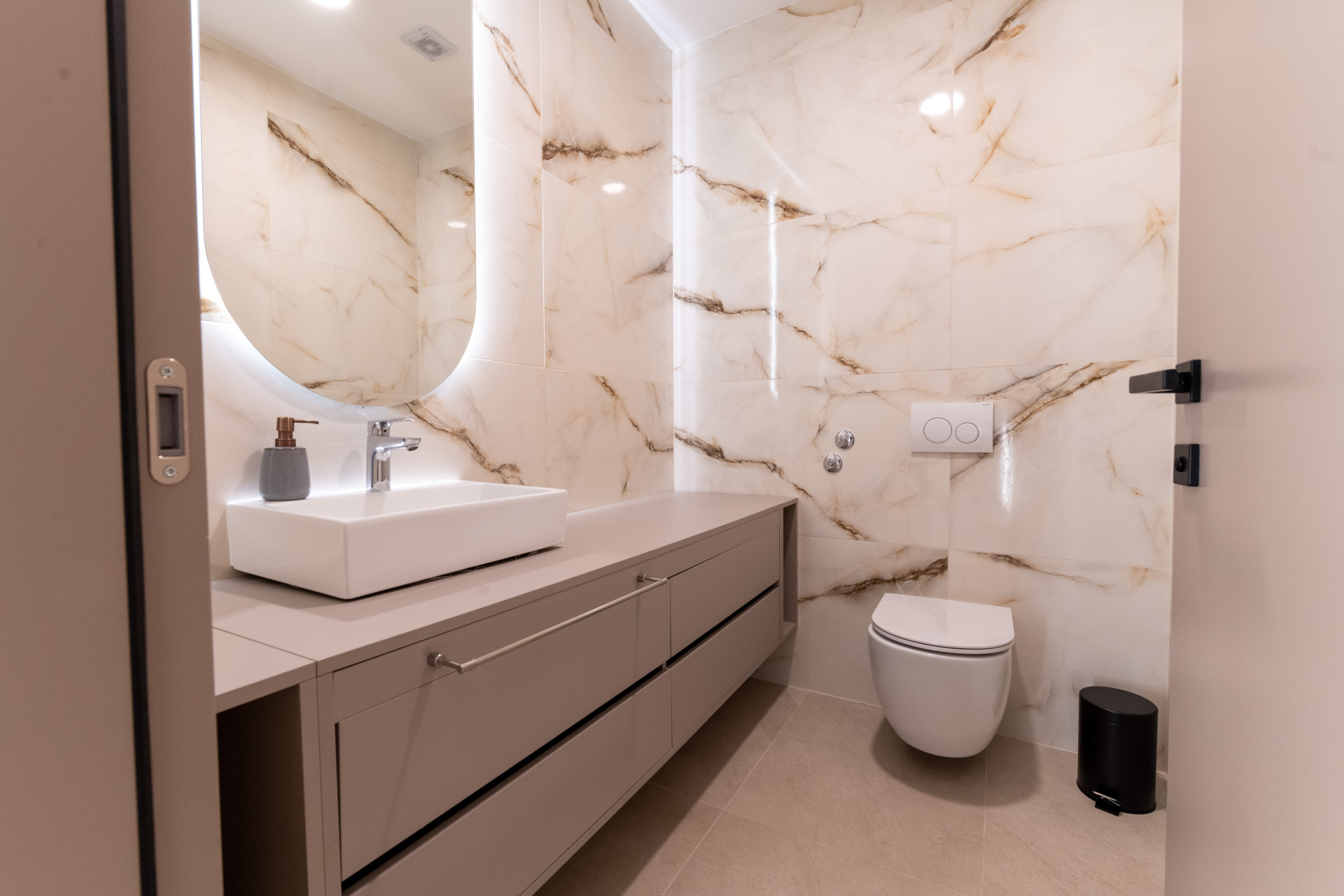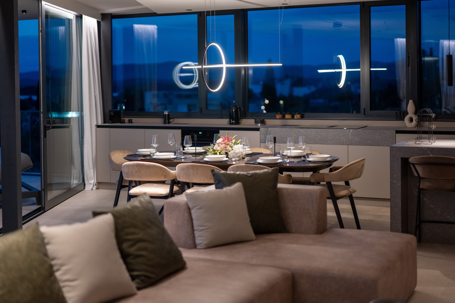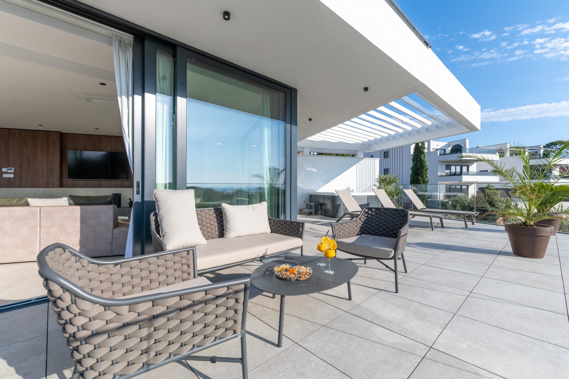 Carefully designed bedrooms, each with a private bathroom, exude harmony in neutral shades. Almost artistically designed, the beautiful living room with large glass openings leading to the spacious terrace gives a feeling of freedom. Try your hand at culinary creations with a fully equipped kitchen and enjoy a sweet feast with an enchanting view of the landscape.