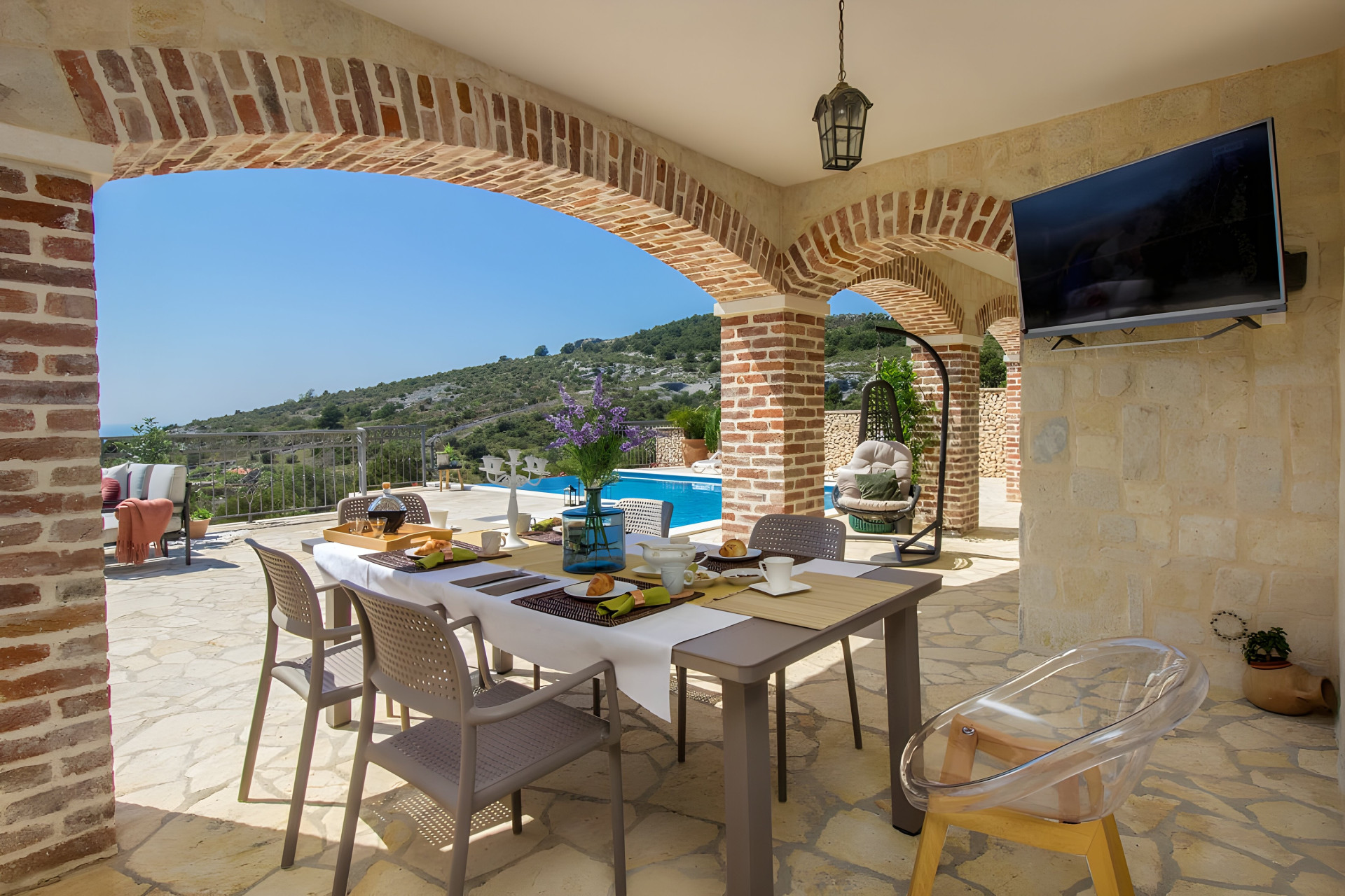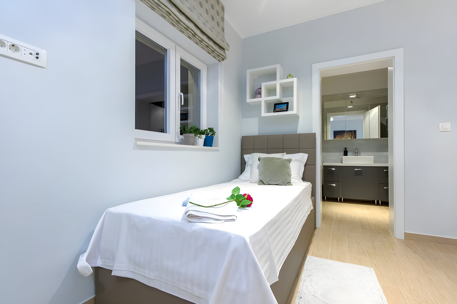 This beautiful stone villa has four spacious bedrooms, one of which is located on the ground floor, providing exceptional privacy. Each room has a private bathroom, providing comfort and convenience. In addition, the modern and elegant style provides guests with a relaxing ambiance.
