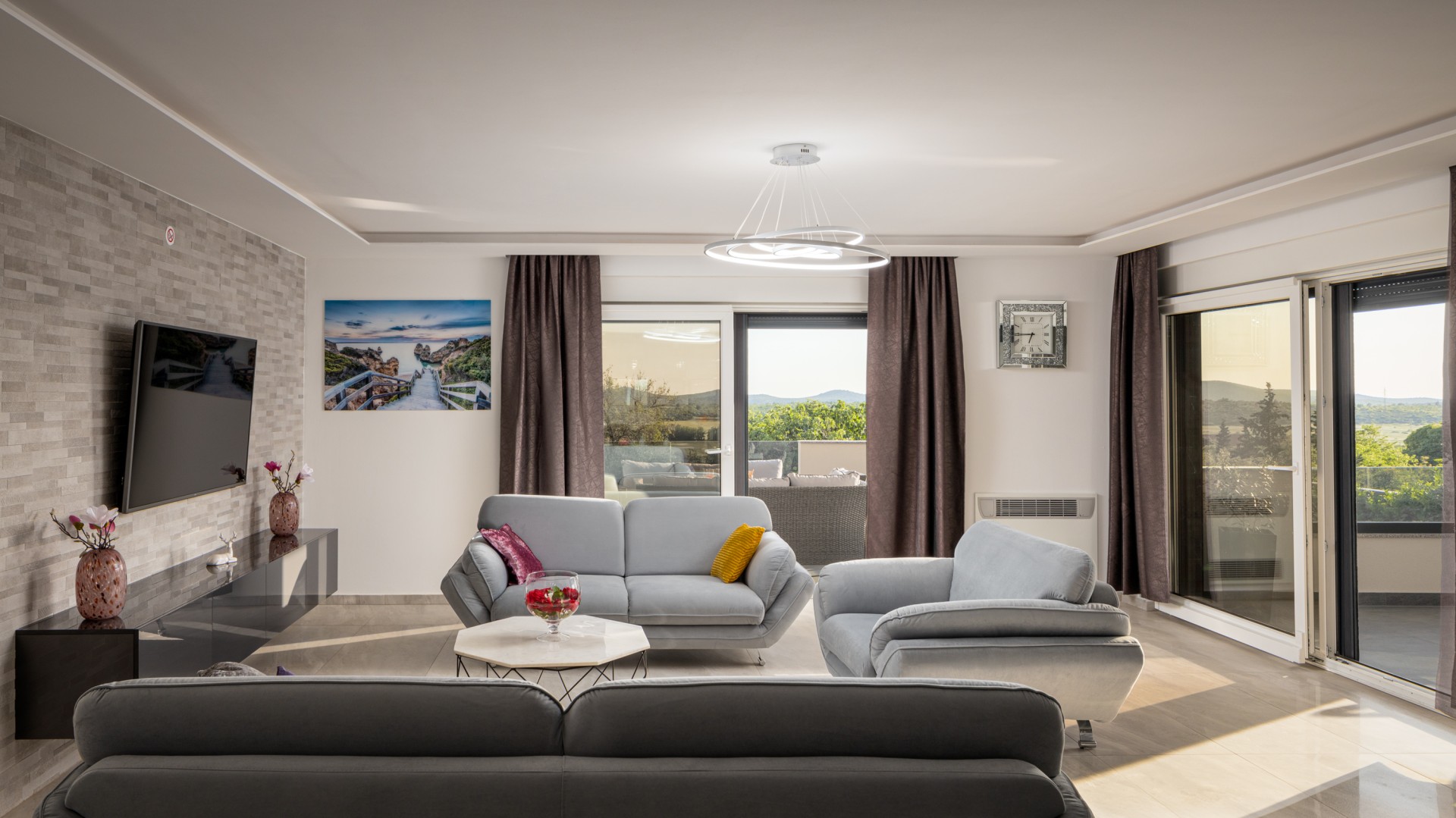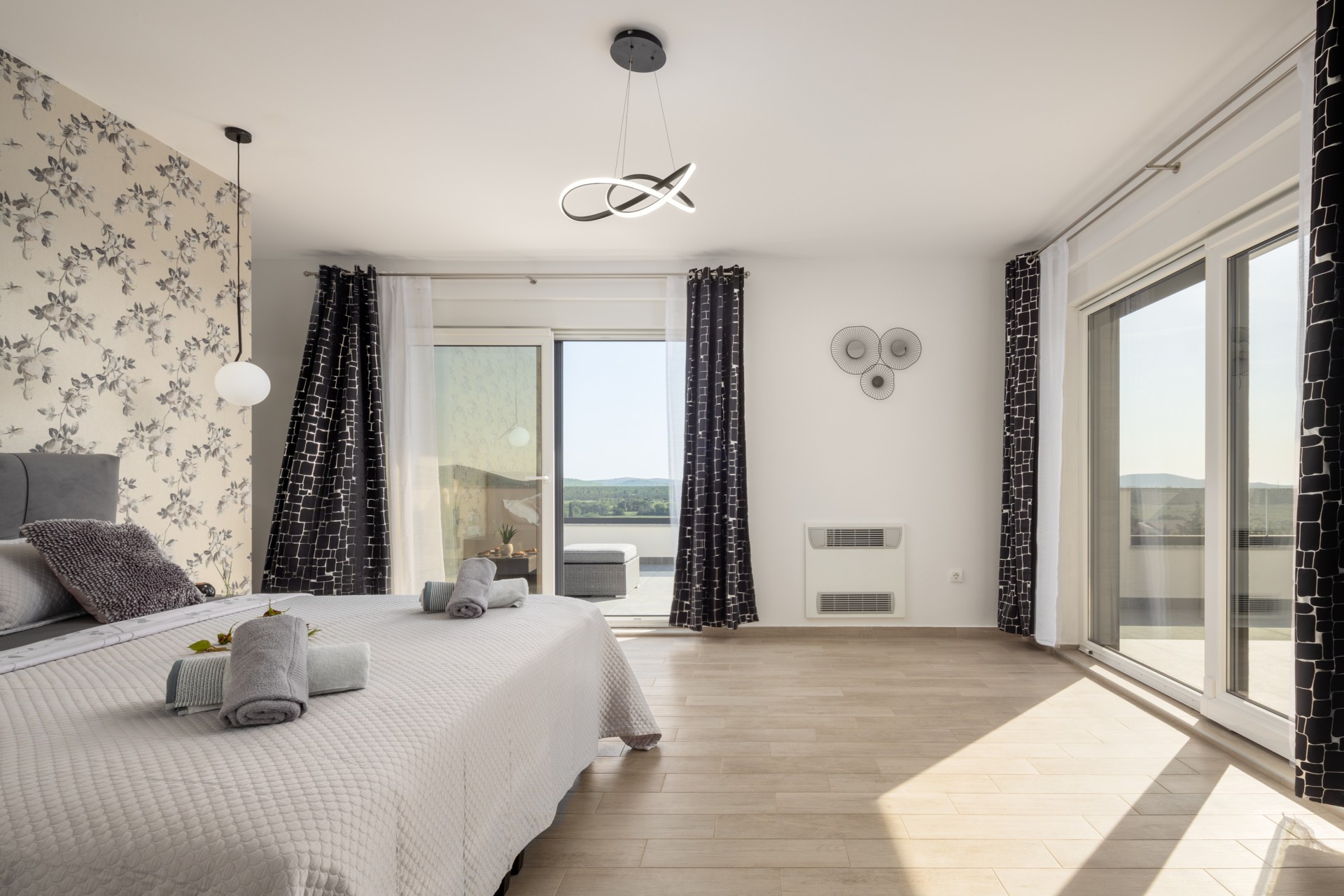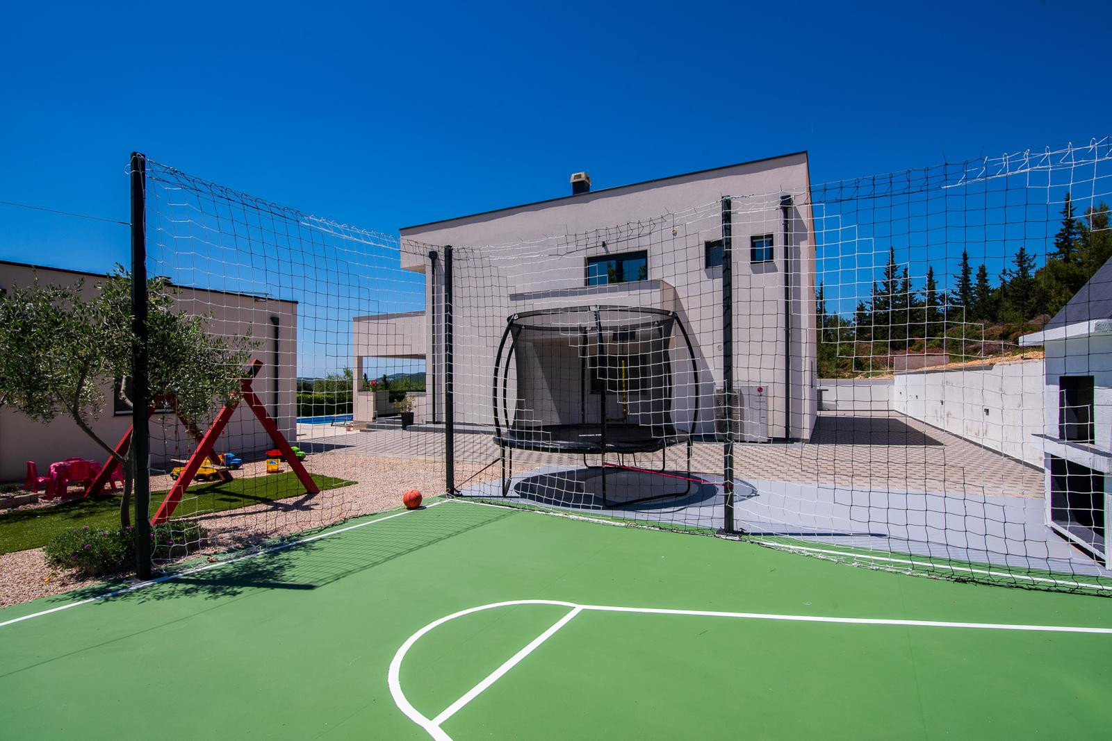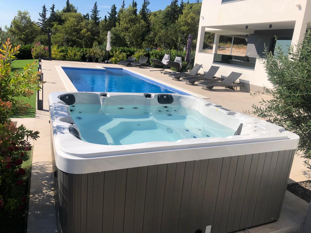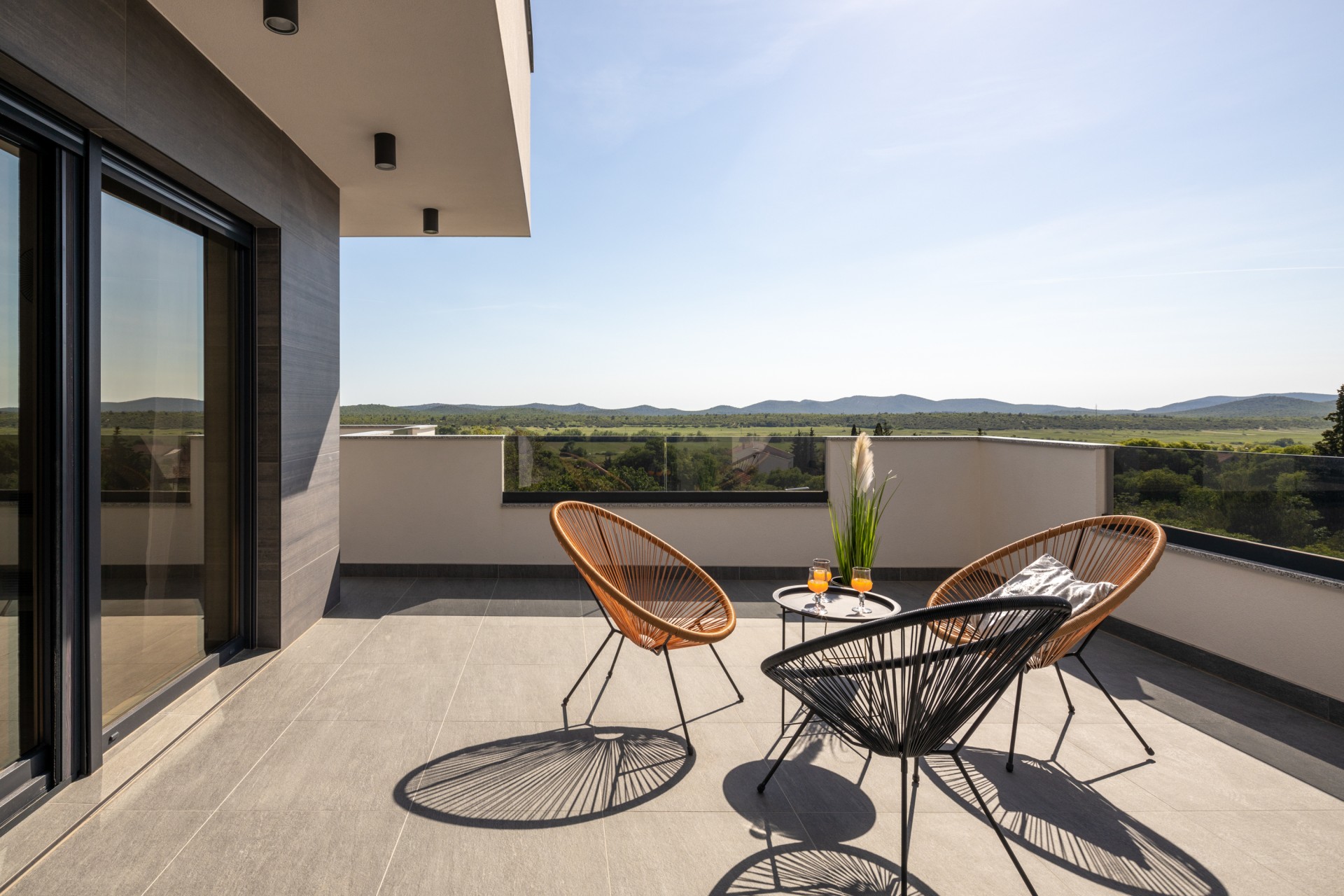 Villa Bura is a modernly designed luxury villa, located in the continental part of the Vodice. The whole villa, both on the inside and the outside, is designed minimalistic, with a lot of touches of black colour. The terraces have a glass fence which enhances the amazing view, while the interior is accentuated with stone walls.
