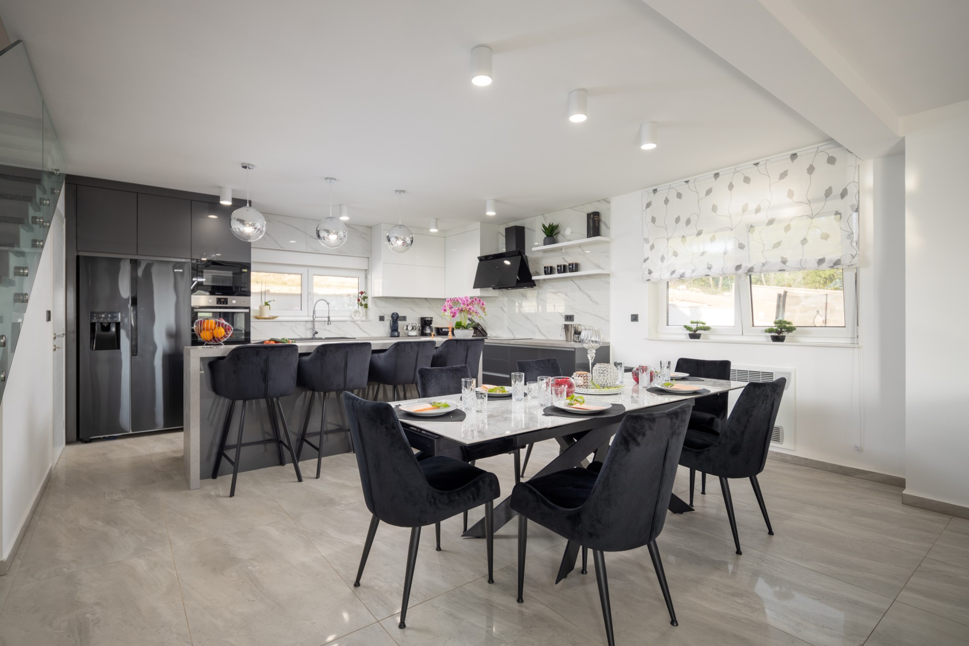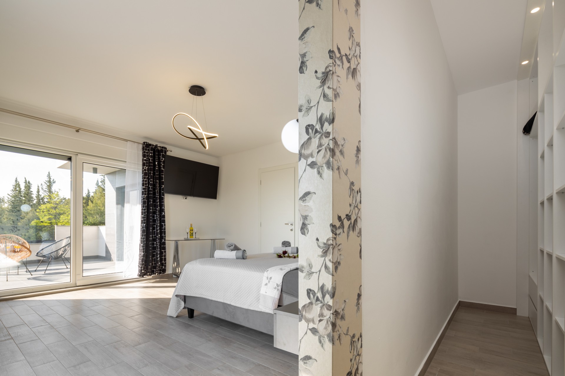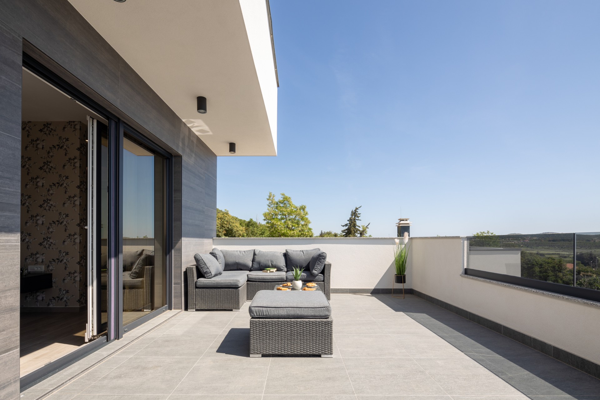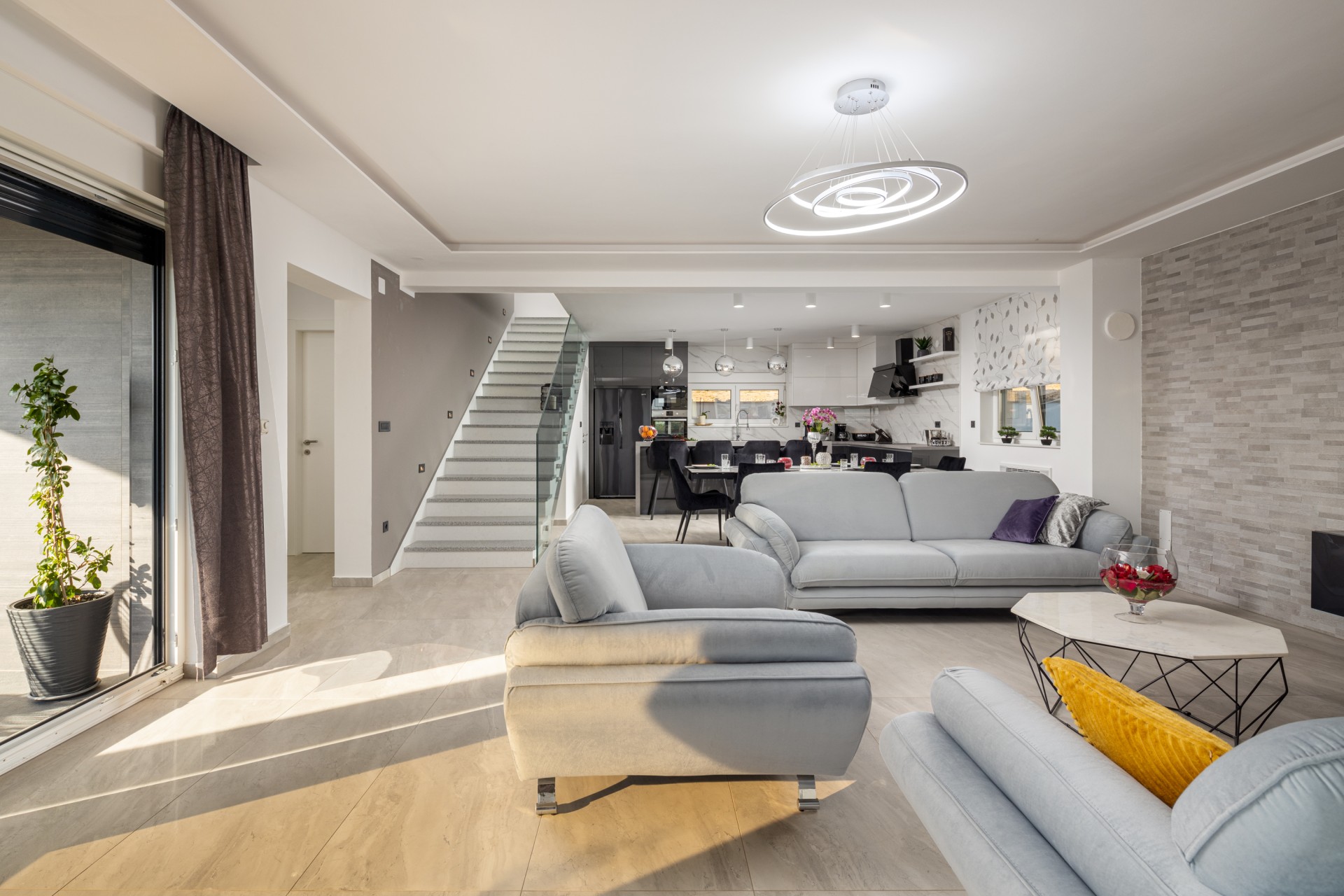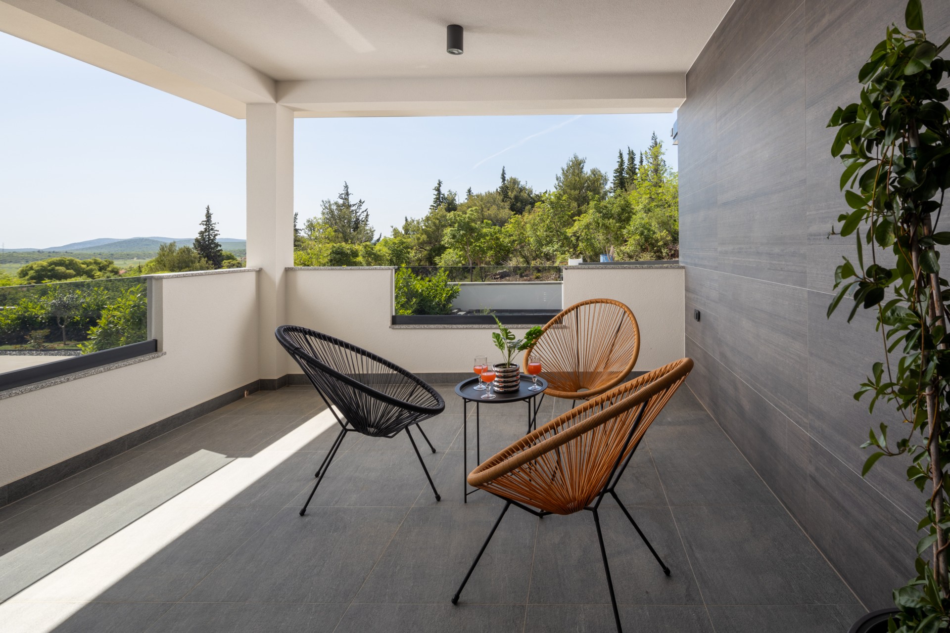 Villa Bura is a modernly designed luxury villa, located in the continental part of the Vodice. The whole villa, both on the inside and the outside, is designed minimalistic, with a lot of touches of black colour. The terraces have a glass fence which enhances the amazing view, while the interior is accentuated with stone walls.