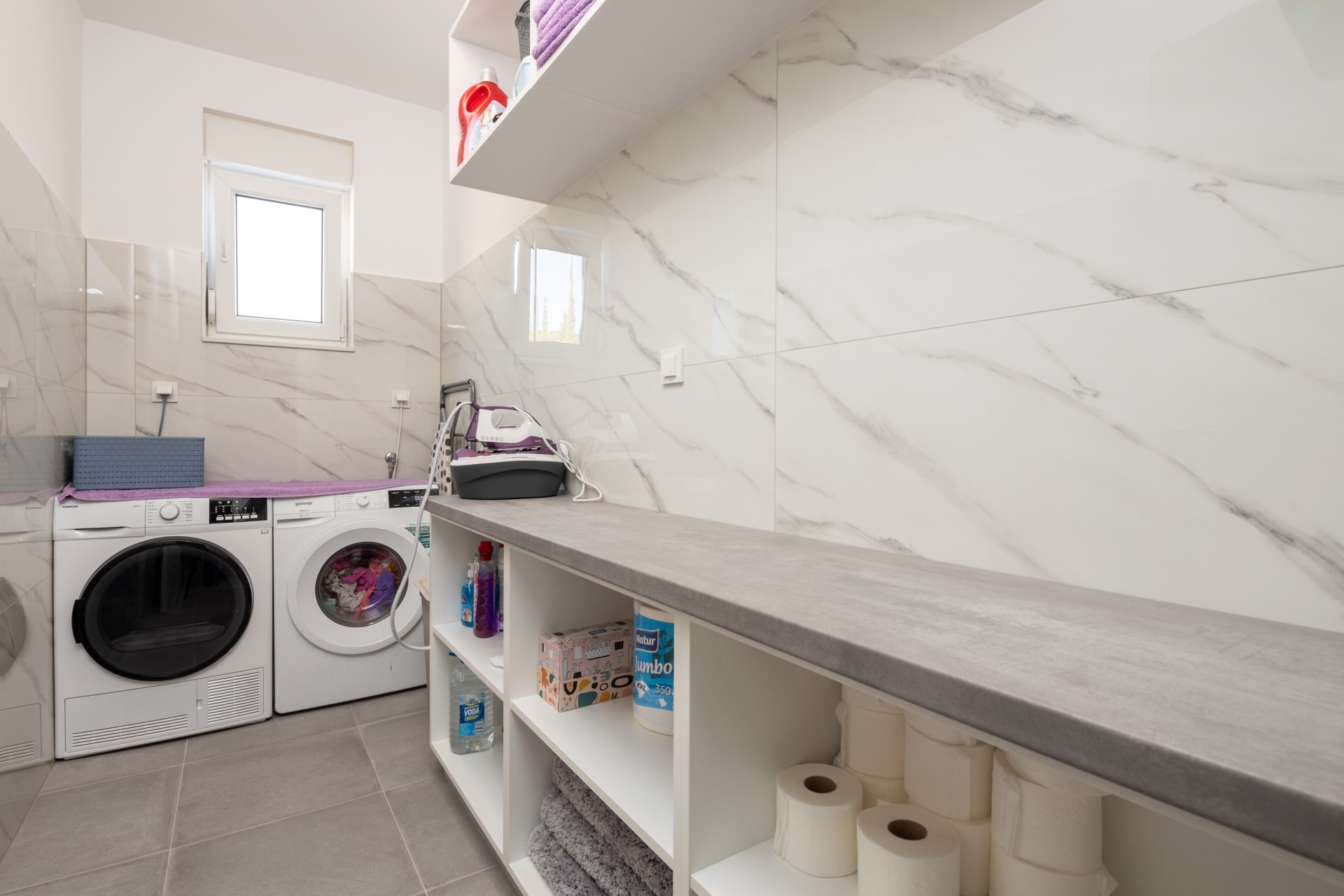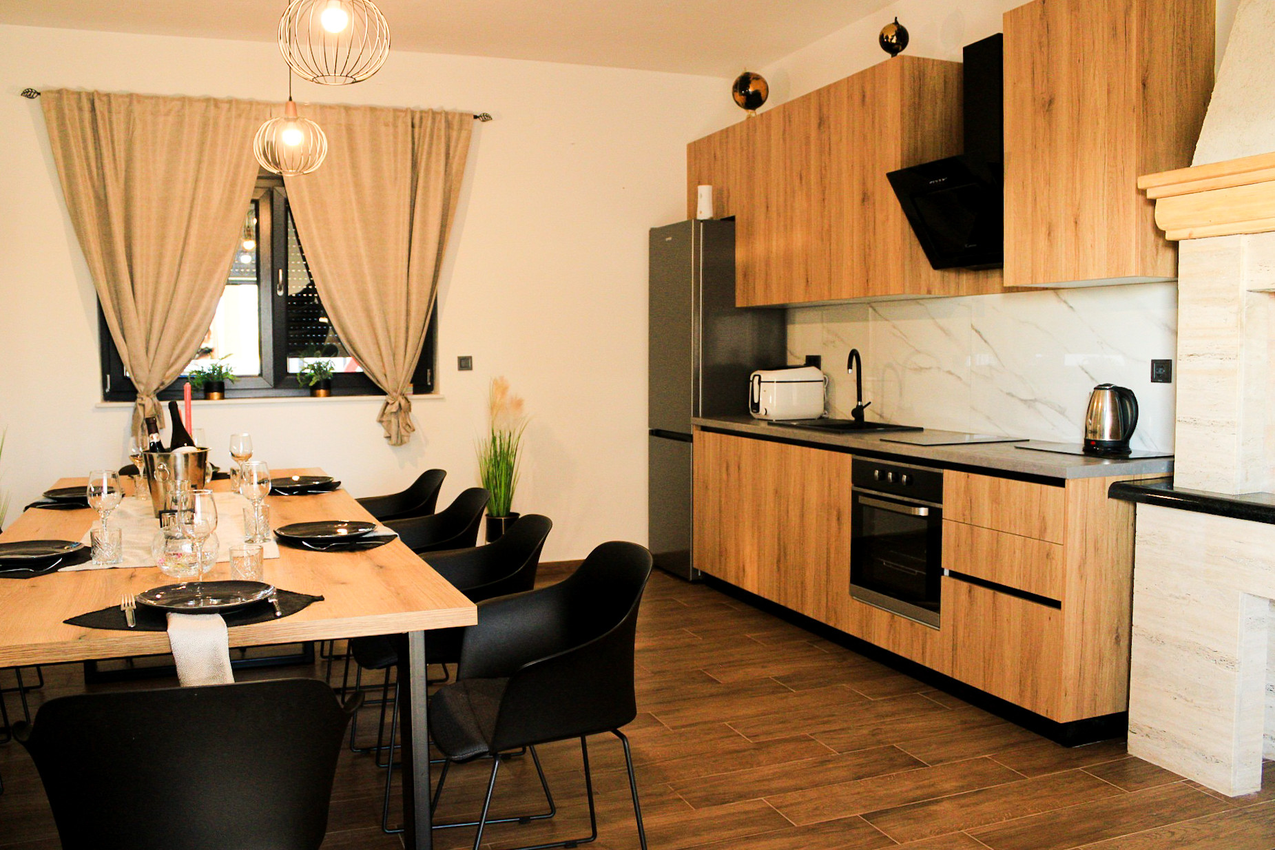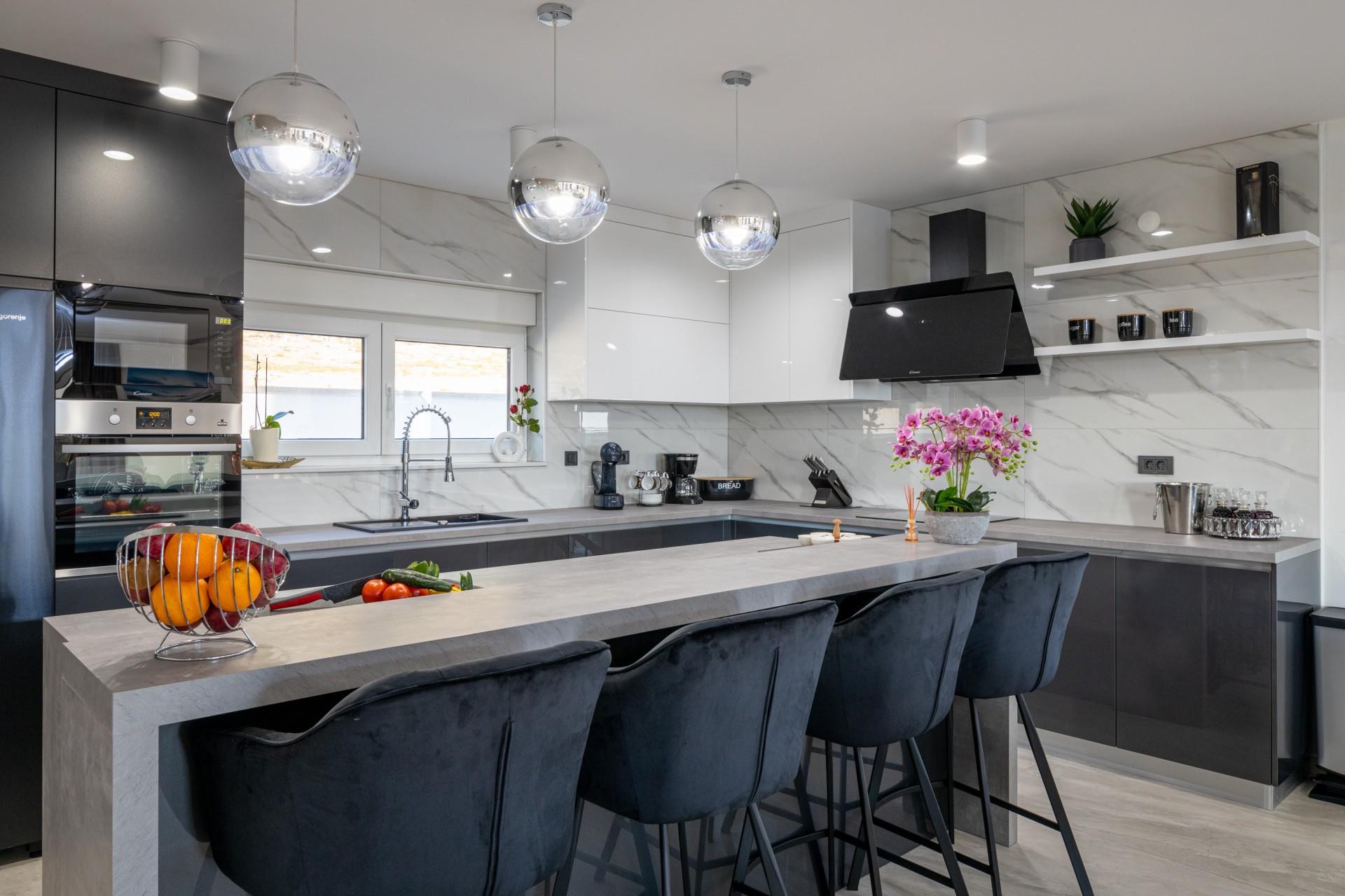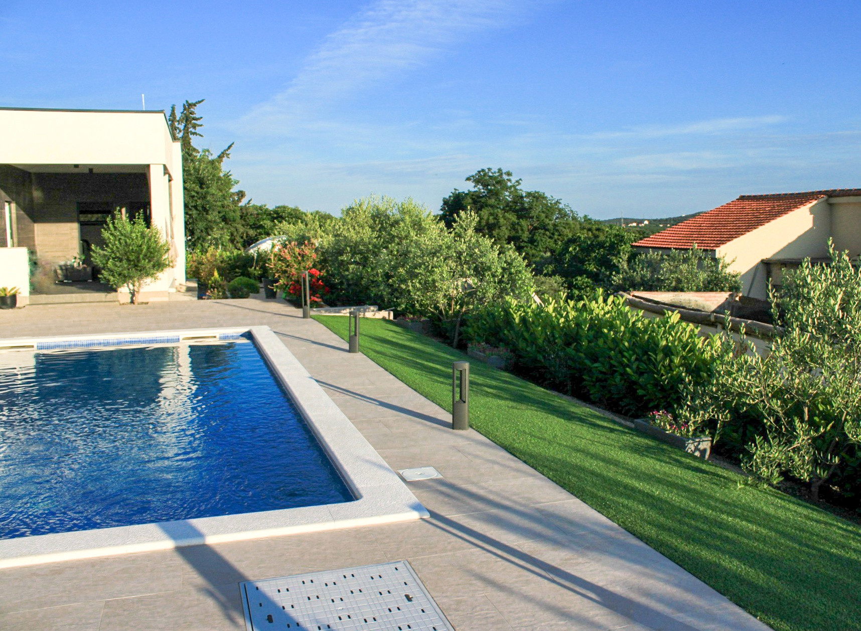 Villa Bura is a modernly designed luxury villa, located in the continental part of the Vodice. The whole villa, both on the inside and the outside, is designed minimalistic, with a lot of touches of black colour. The terraces have a glass fence which enhances the amazing view, while the interior is accentuated with stone walls.