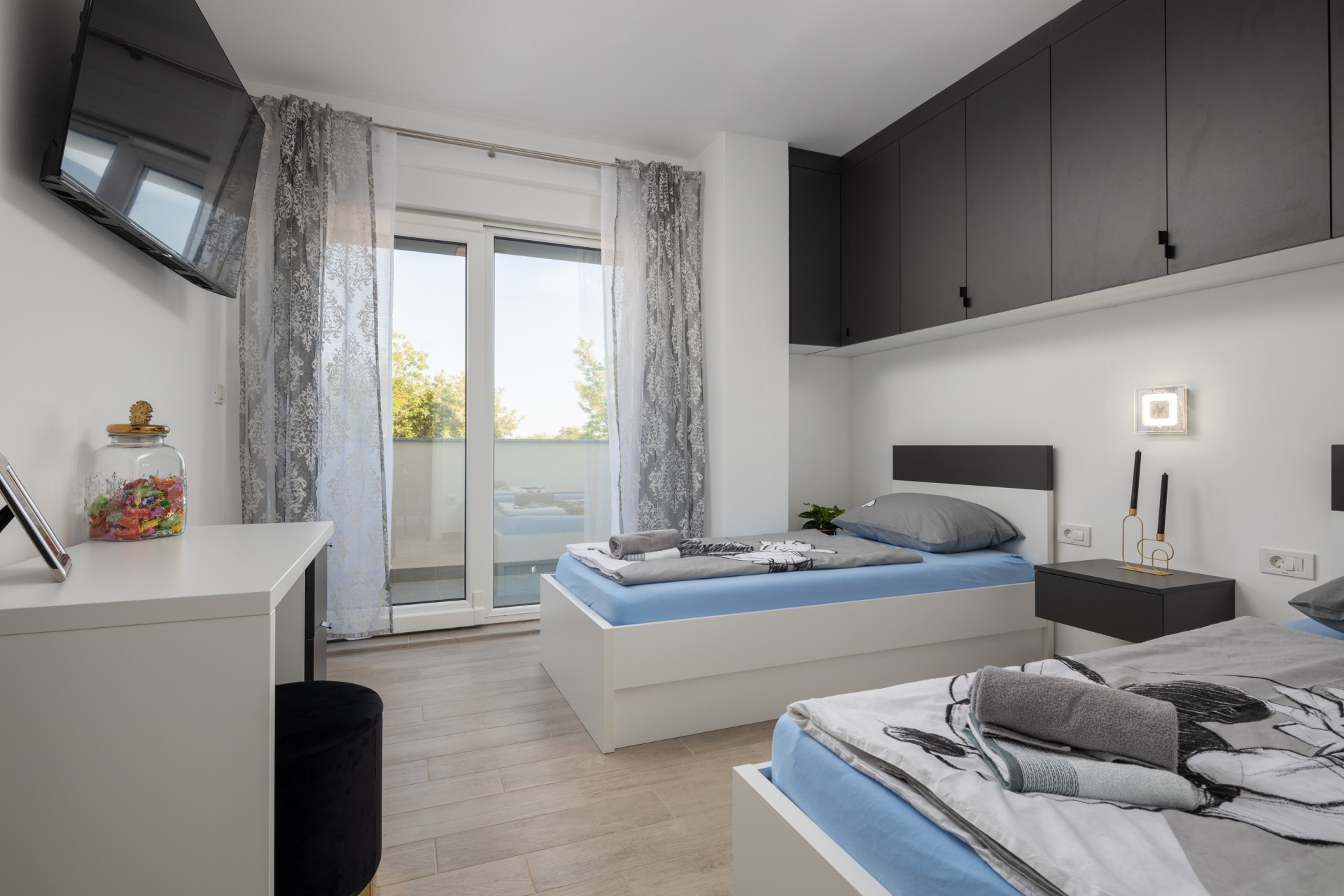 Perfect for large groups, villa Bura has a maximum capacity of 10 people. The 4 spacious bedrooms accommodate 8 guests, while there are 2 additional beds for 2 children.
