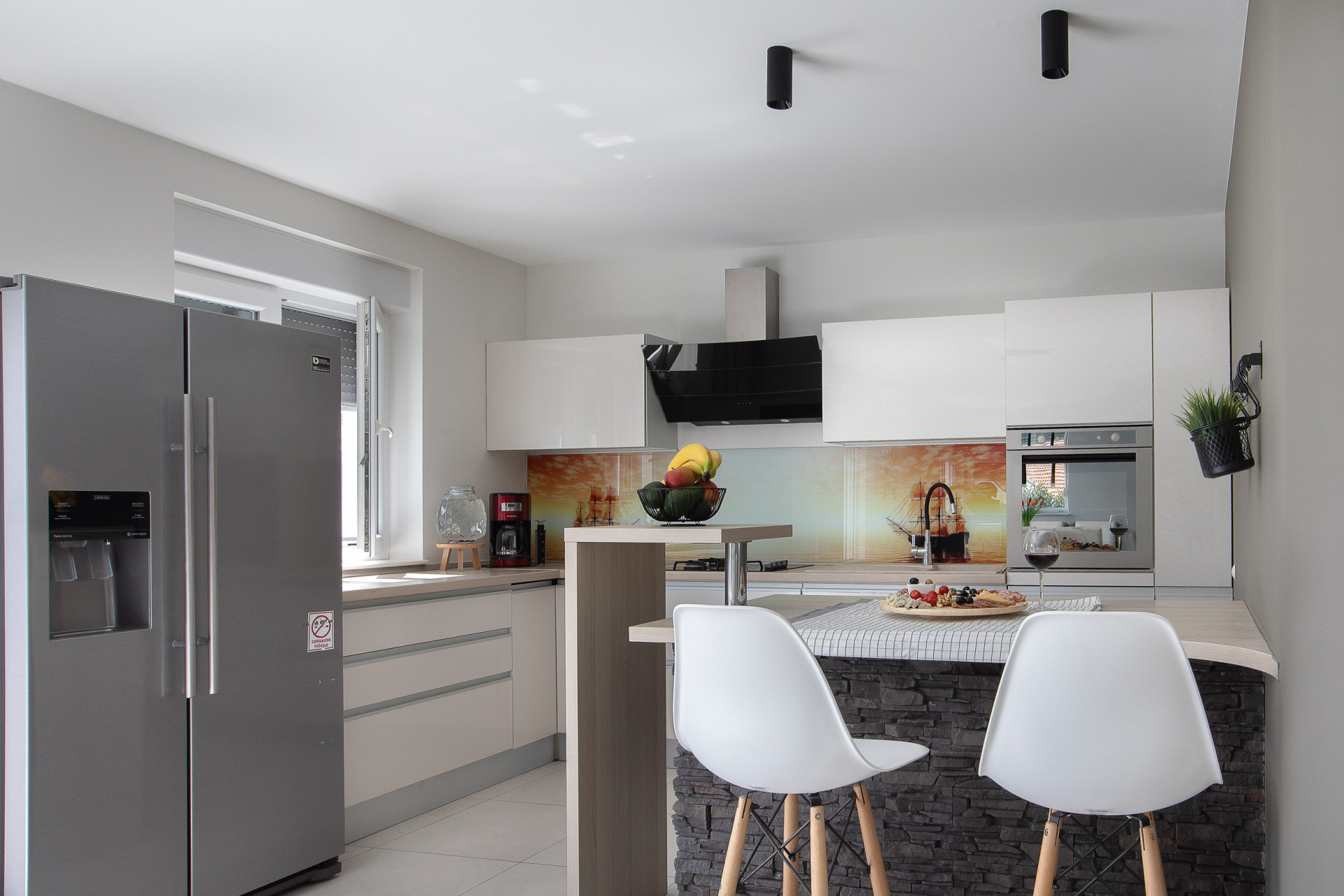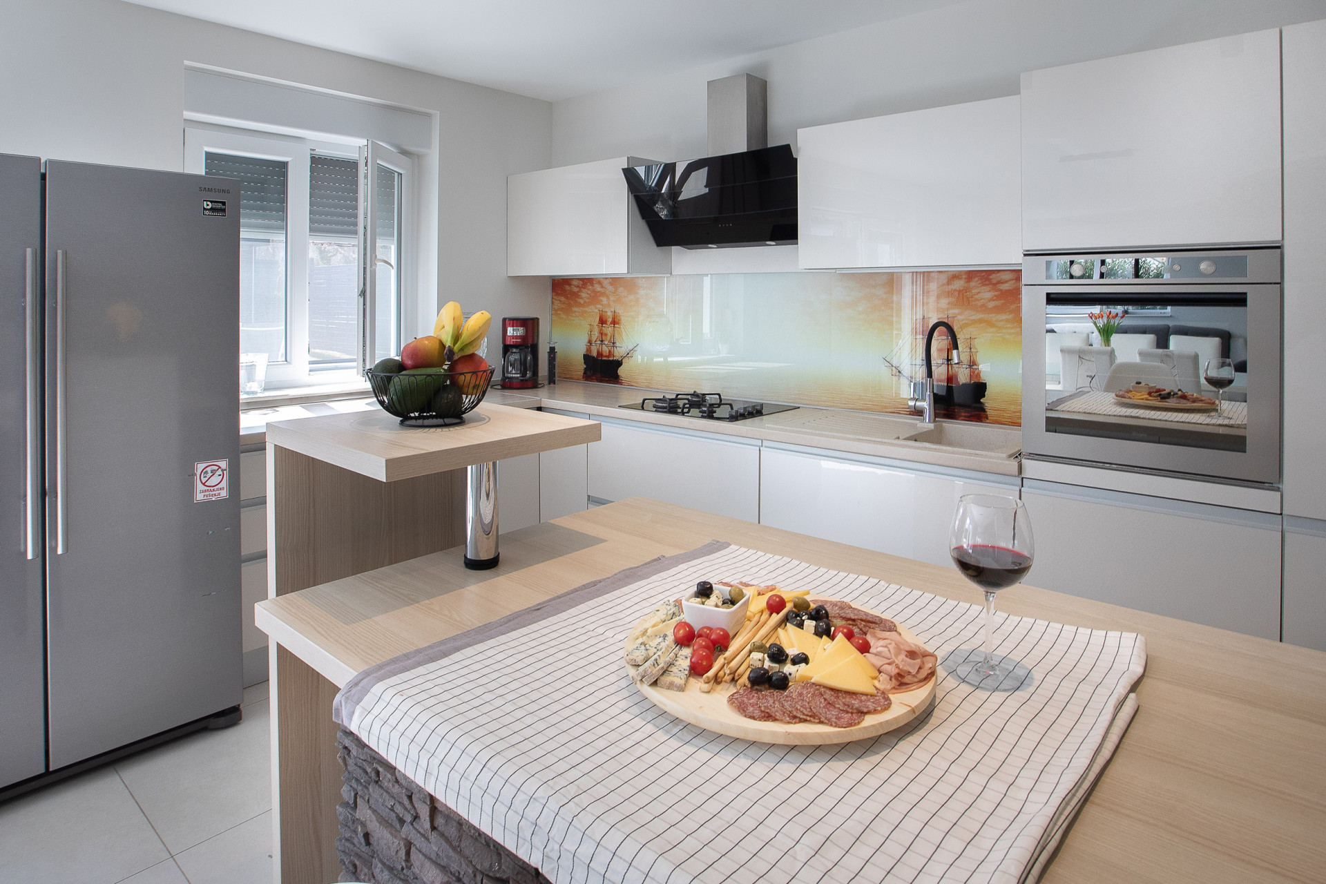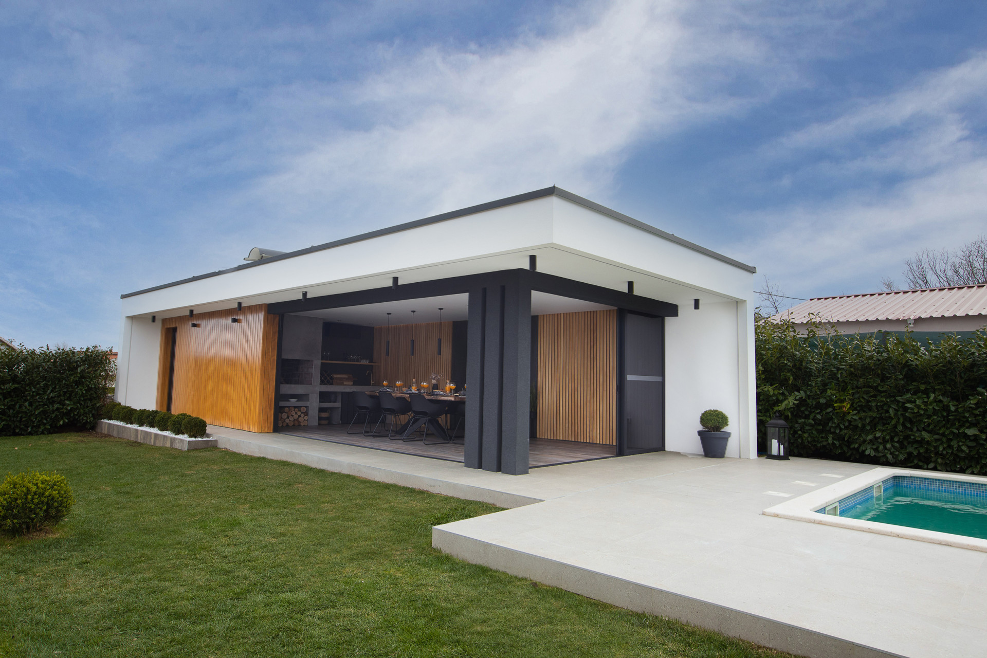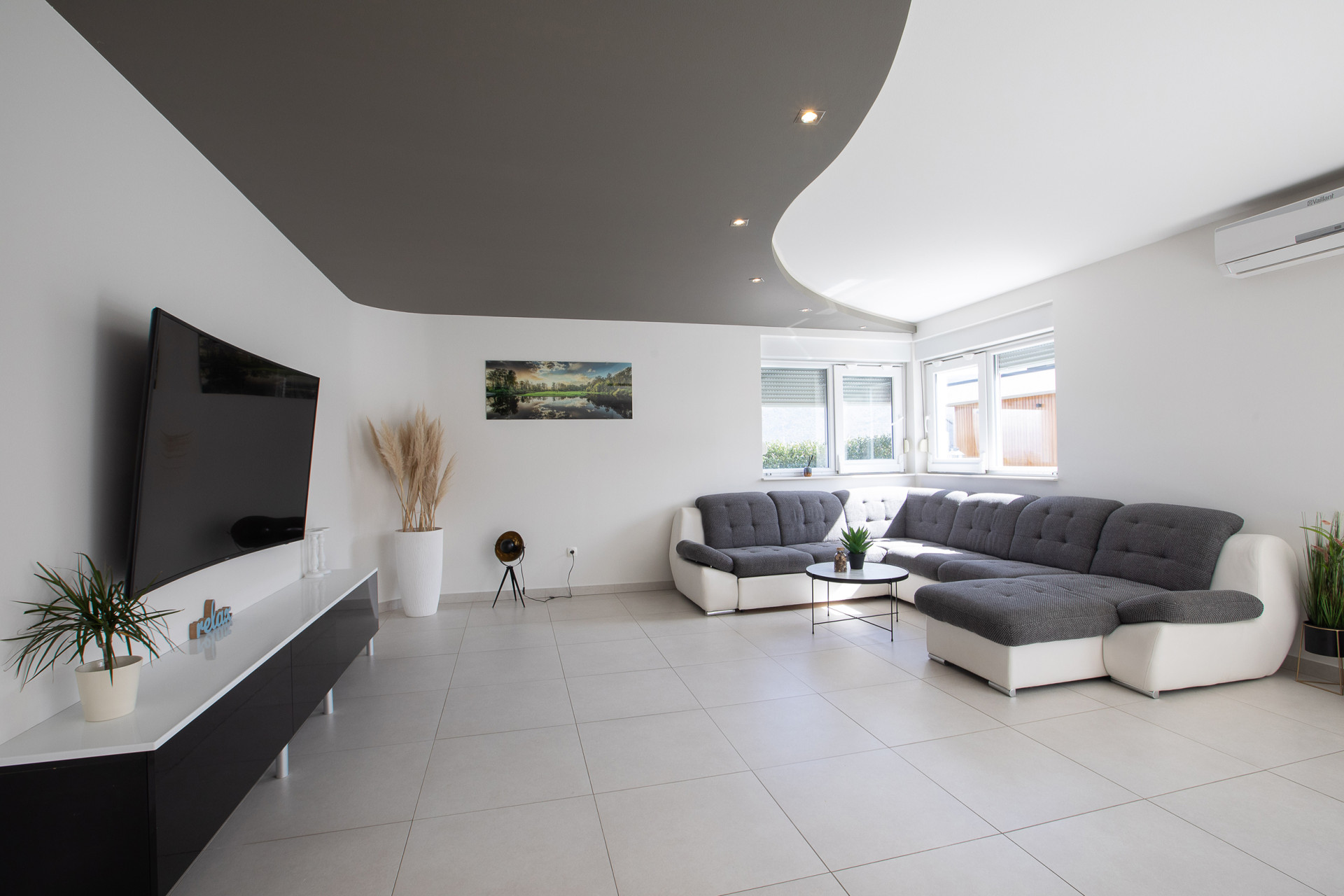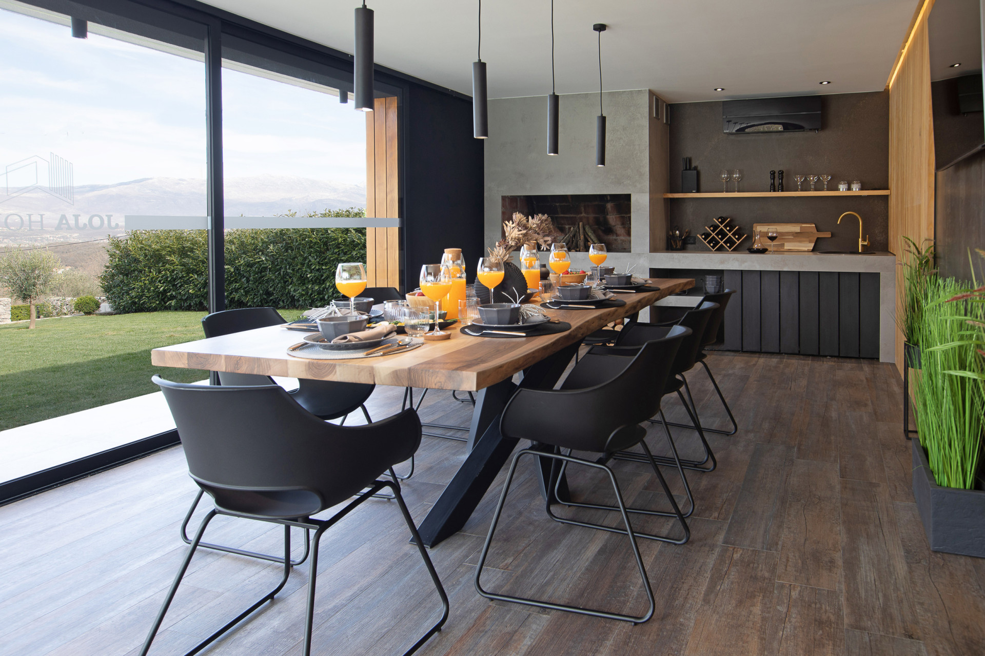 This decent one-story house speaks for itself with its design. The elegant interior decoration contrasts with the surrounding rural area, contributing to a special experience of a Mediterranean holiday. A spacious living room and a modern fully equipped kitchen with a dining room will charm you with its black and gray aesthetics.