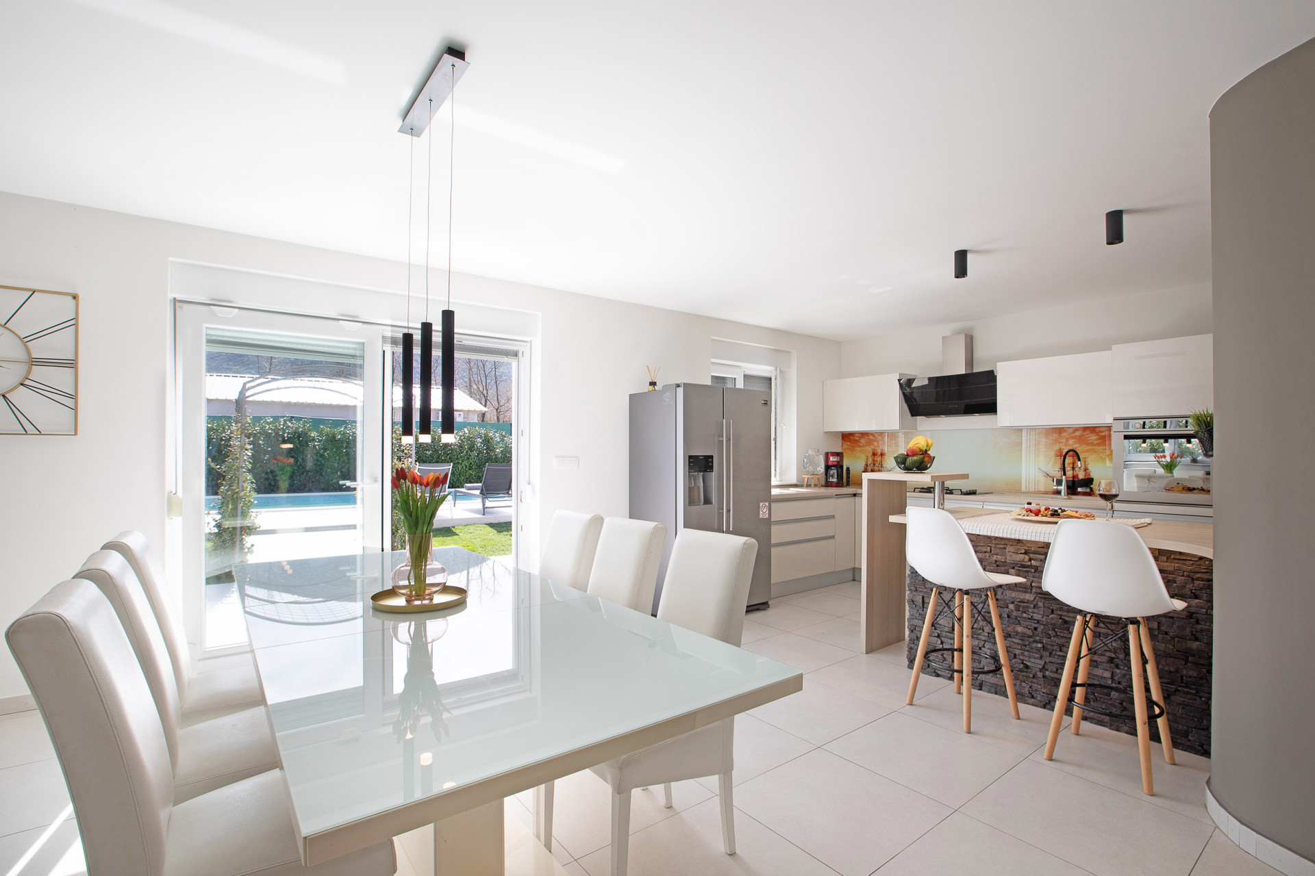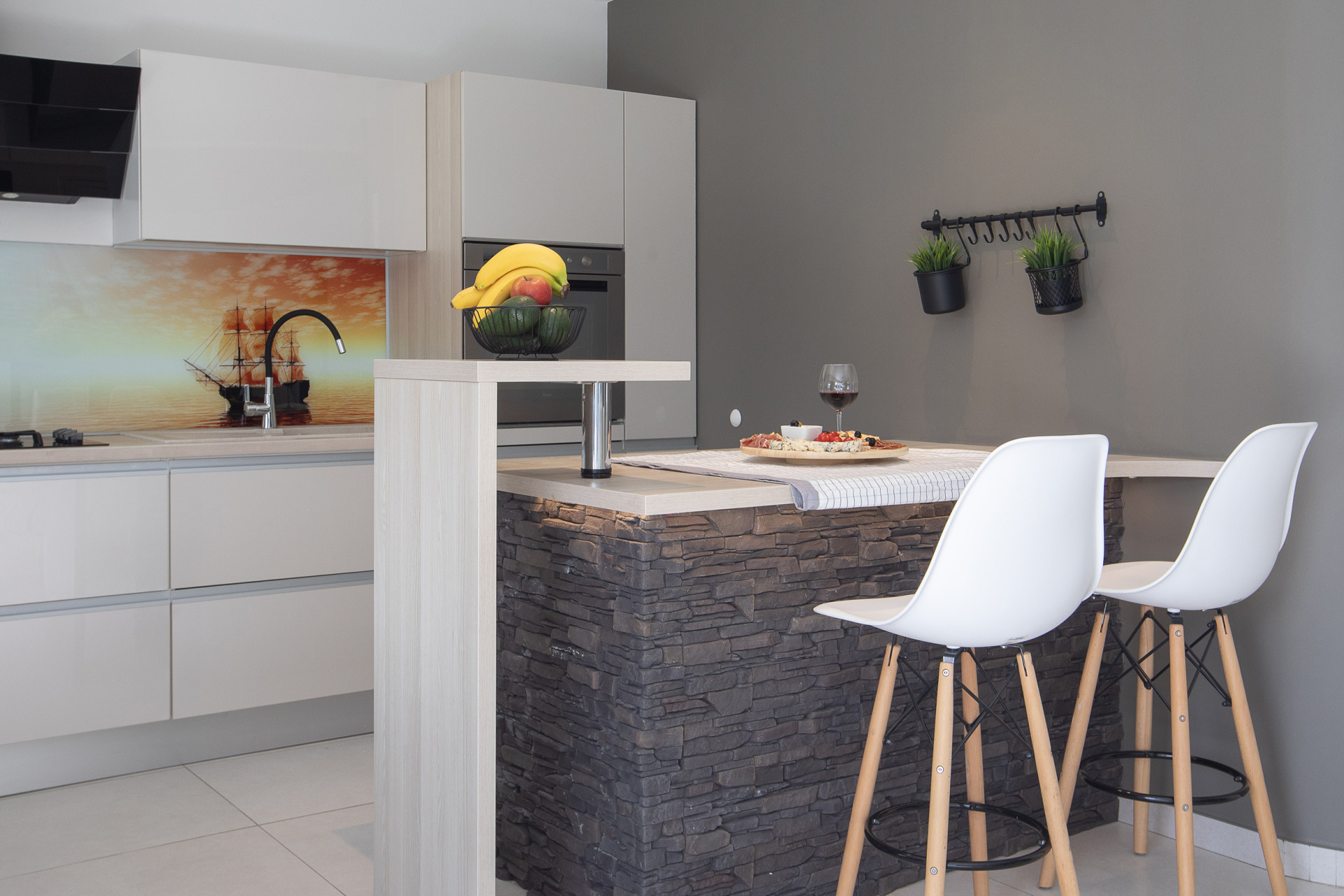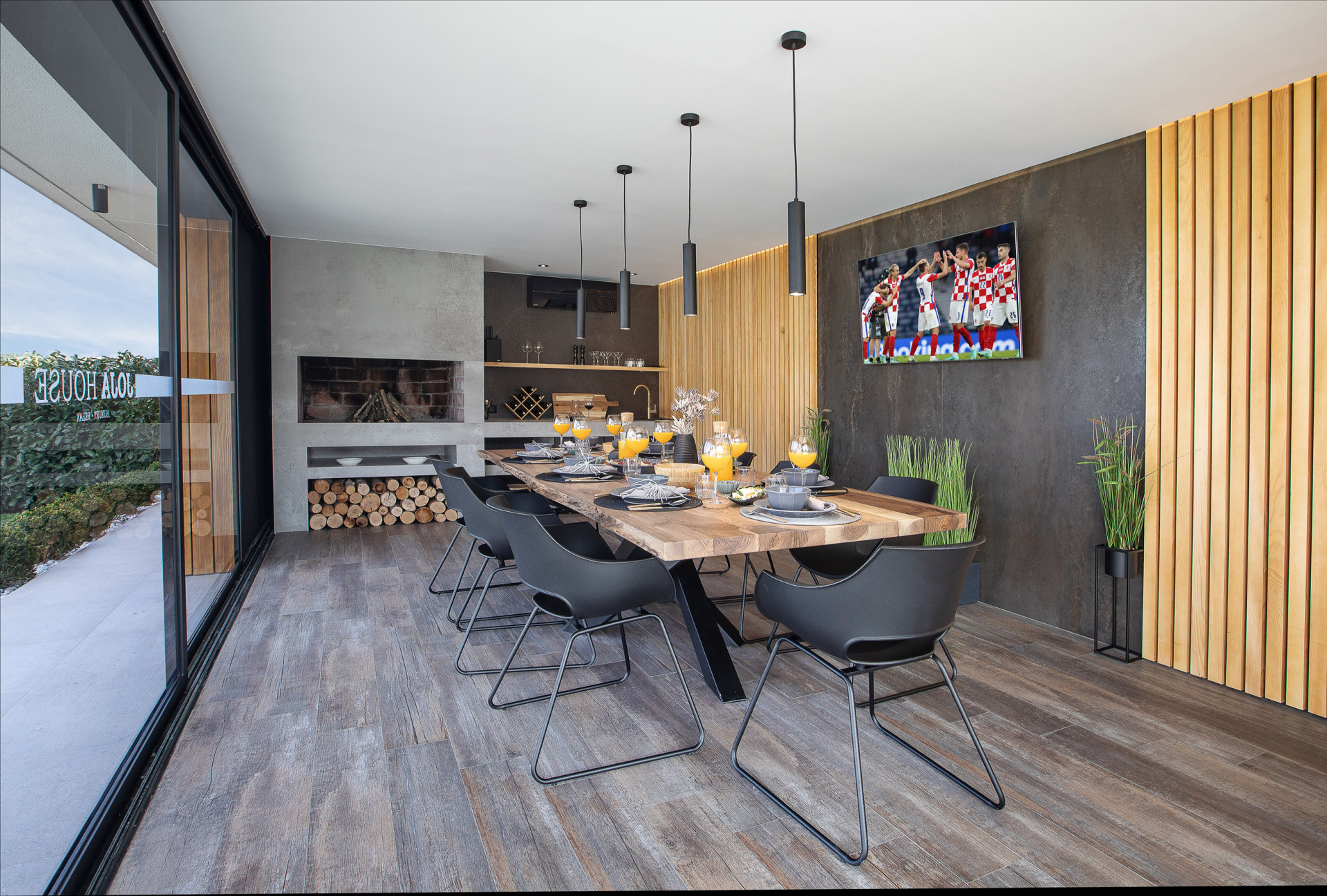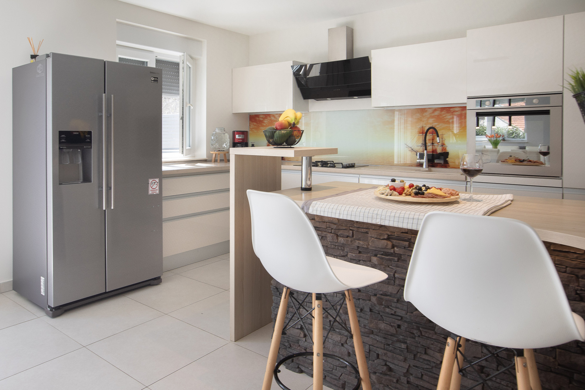 This decent one-story house speaks for itself with its design. The elegant interior decoration contrasts with the surrounding rural area, contributing to a special experience of a Mediterranean holiday. A spacious living room and a modern fully equipped kitchen with a dining room will charm you with its black and gray aesthetics.