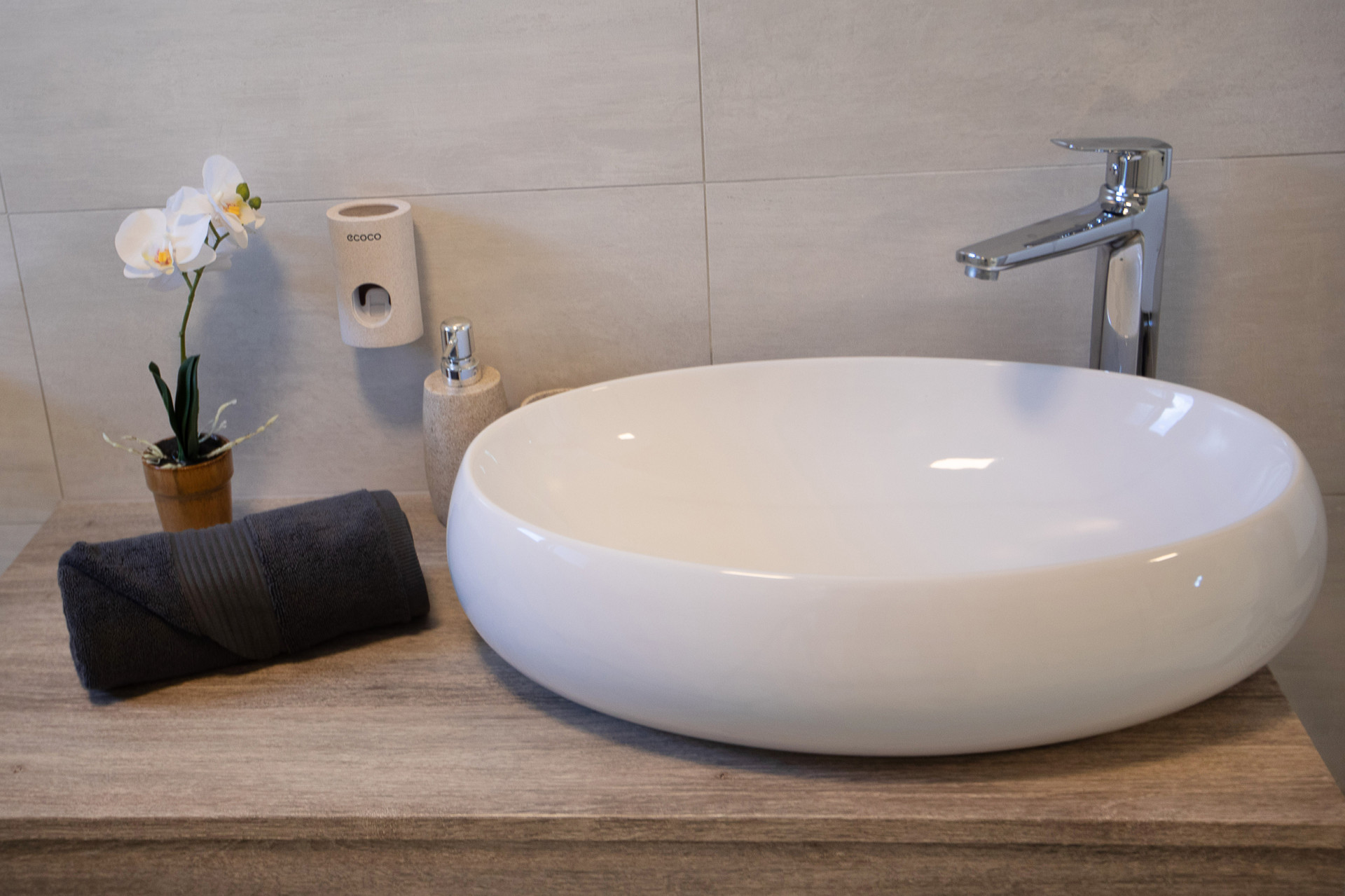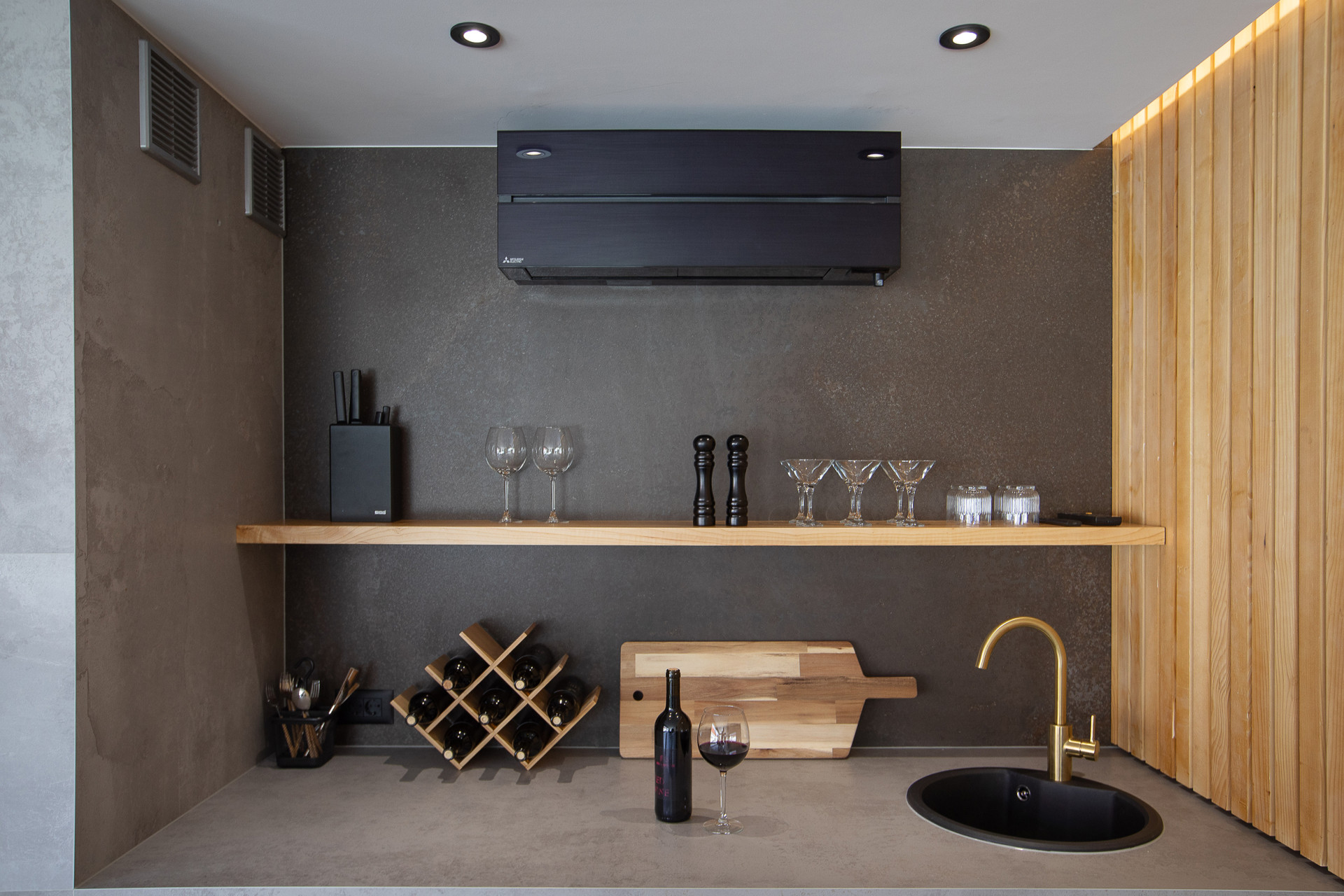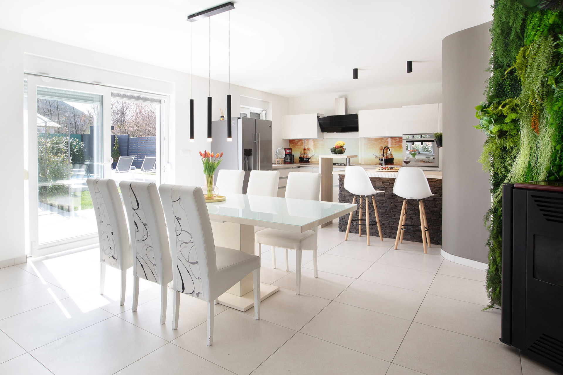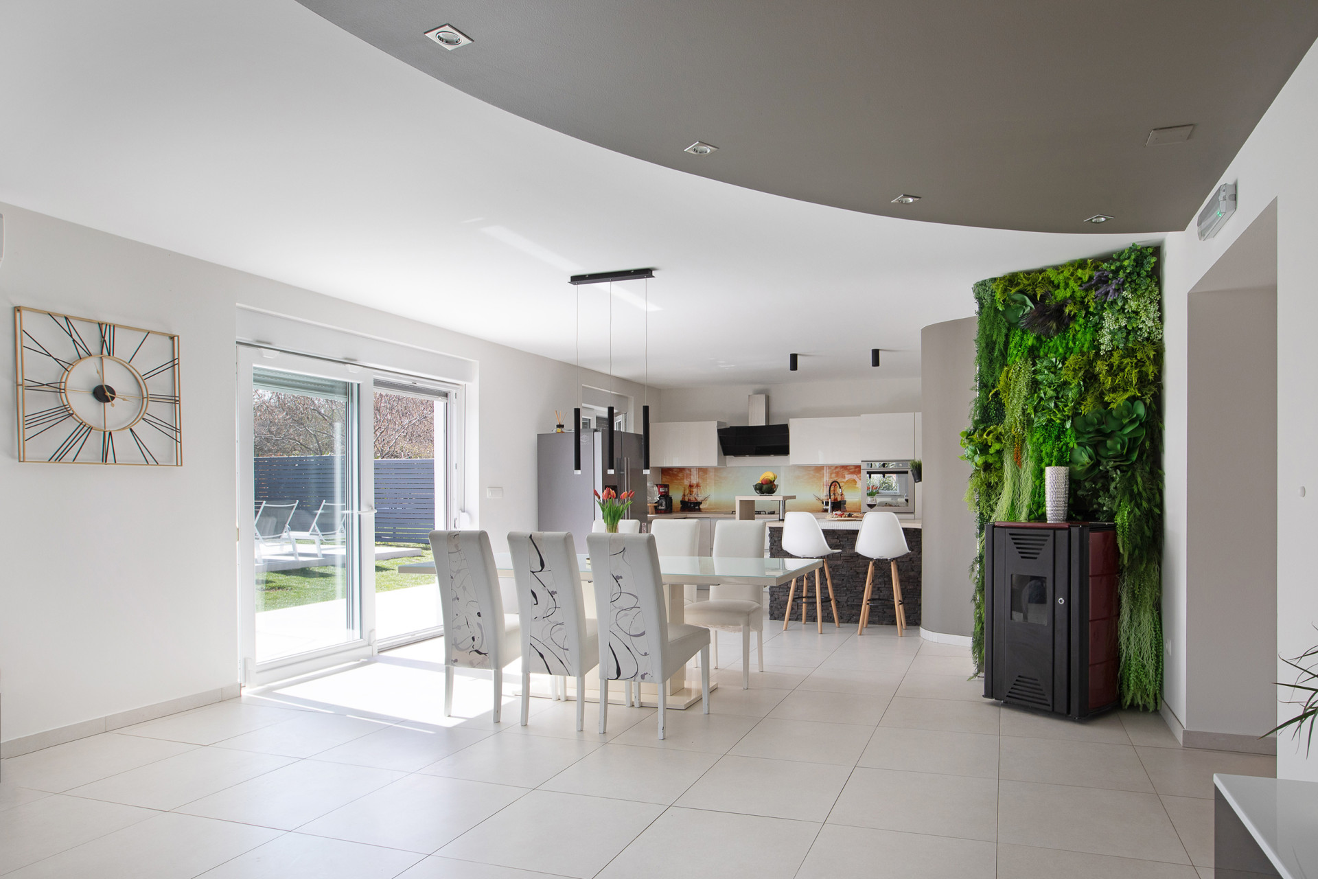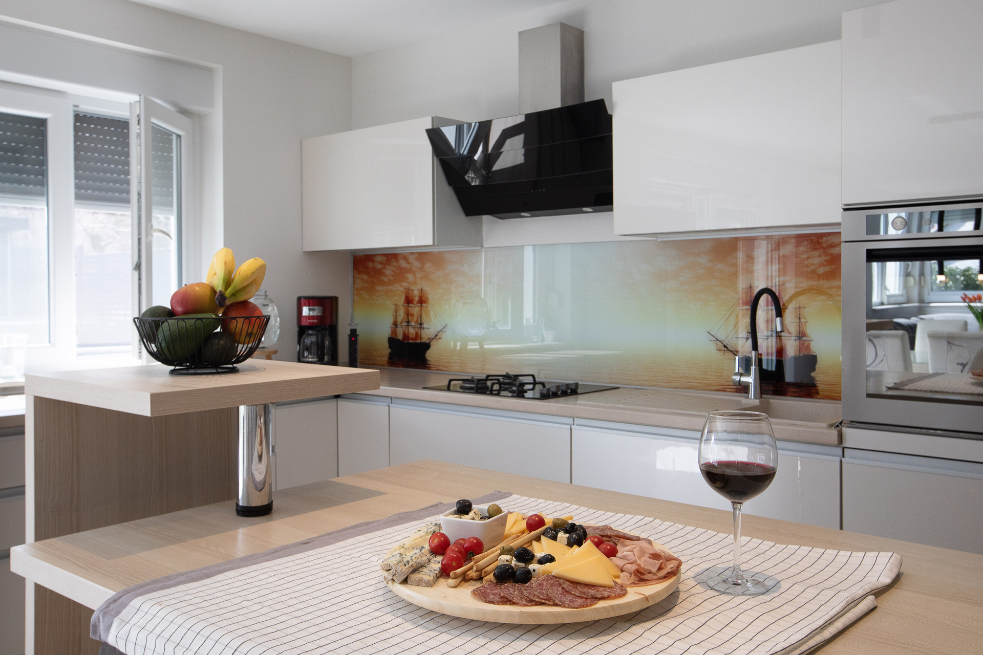 This decent one-story house speaks for itself with its design. The elegant interior decoration contrasts with the surrounding rural area, contributing to a special experience of a Mediterranean holiday. A spacious living room and a modern fully equipped kitchen with a dining room will charm you with its black and gray aesthetics.