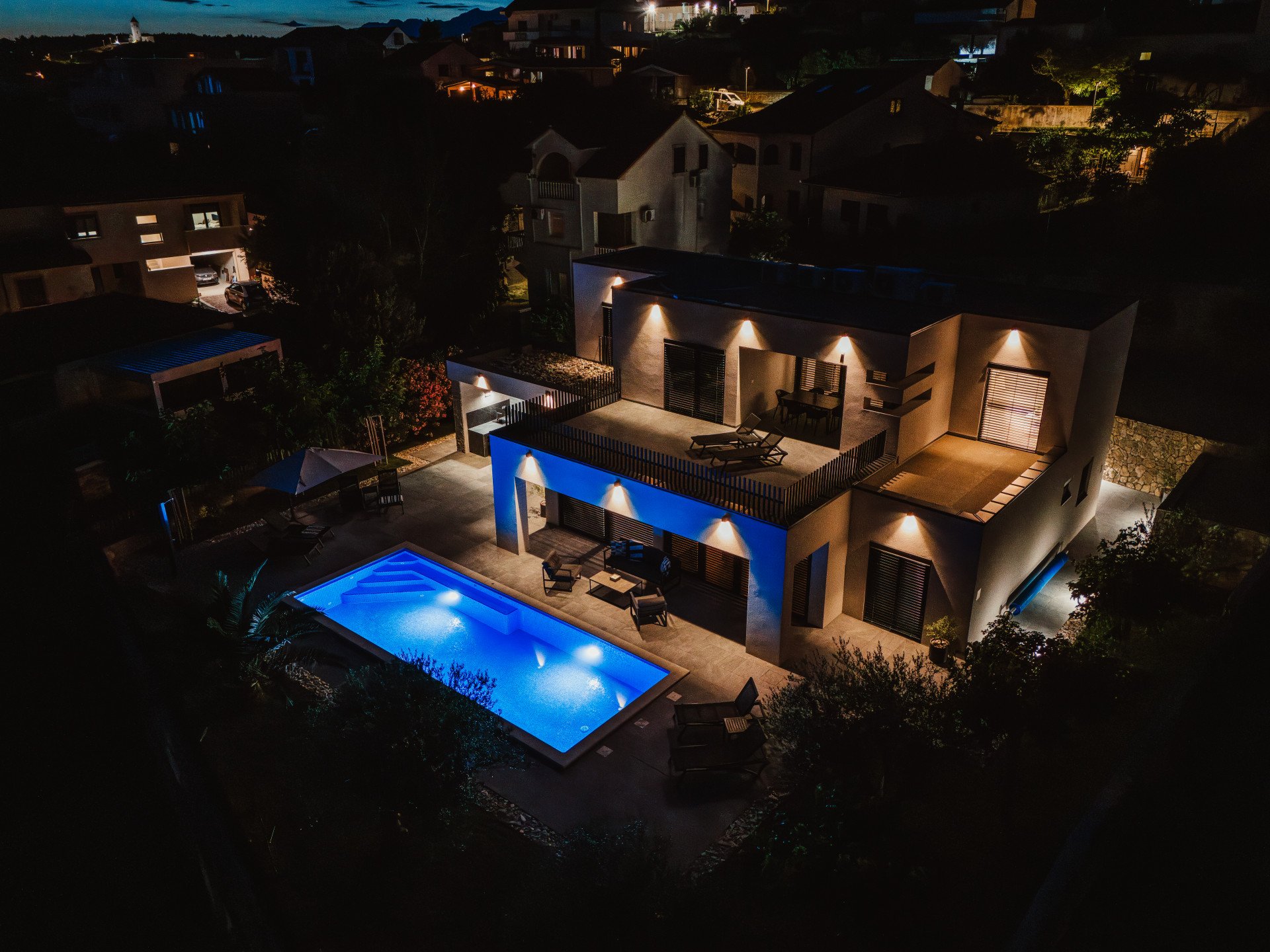 The villa is in an ideal location for those who enjoy exploring nature because it is just within 100 kilometers of five national parks: Plitvice Lakes, Velebit, Paklenica in the north, and Krka and Kornati in the south.