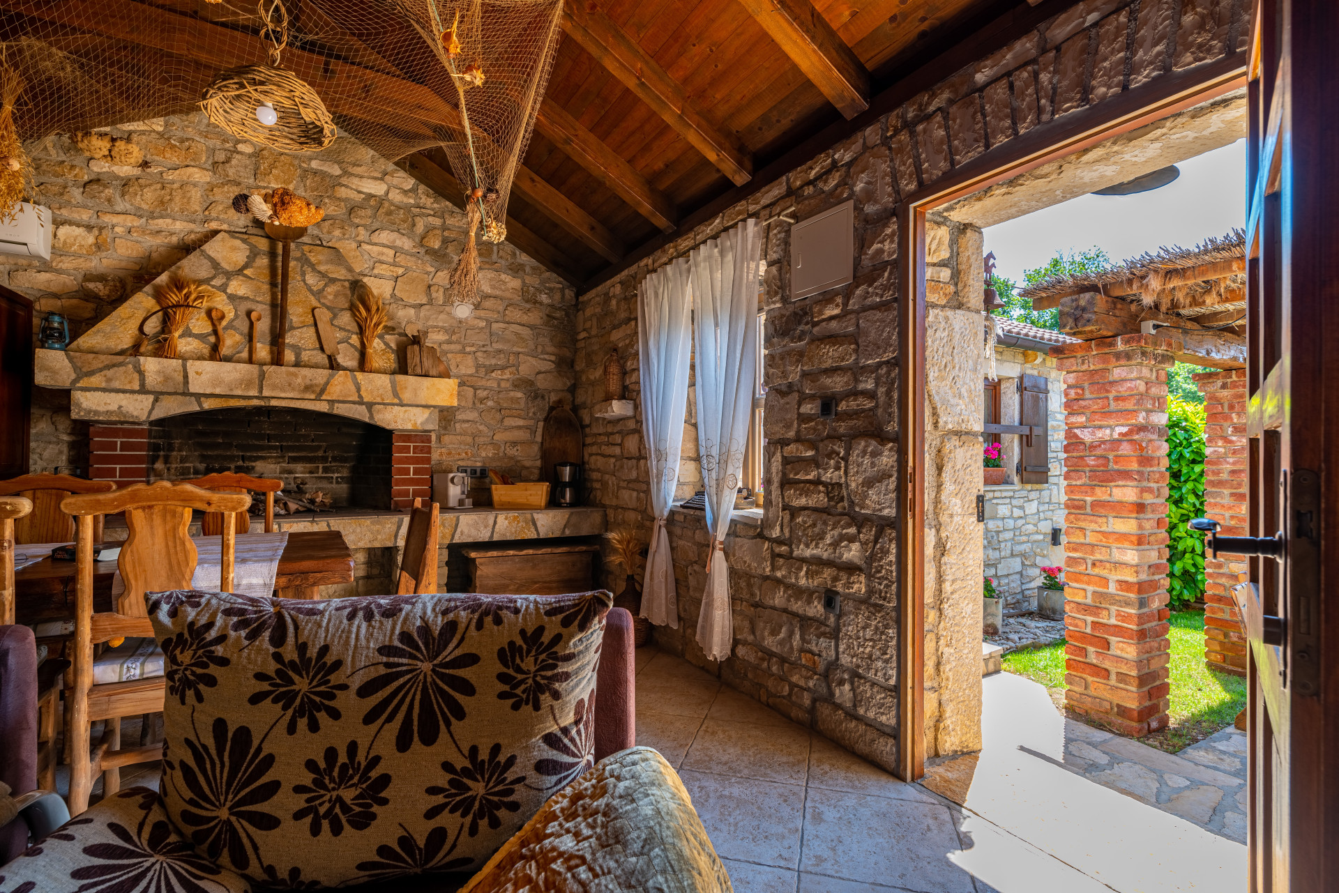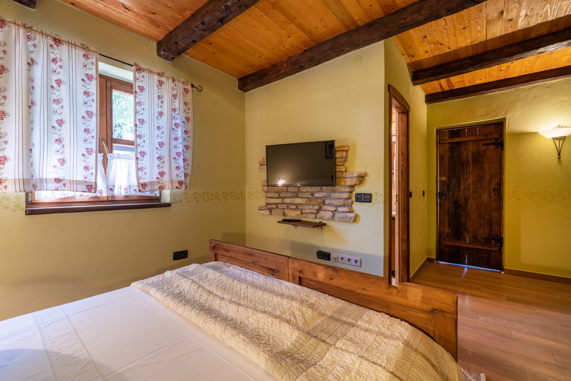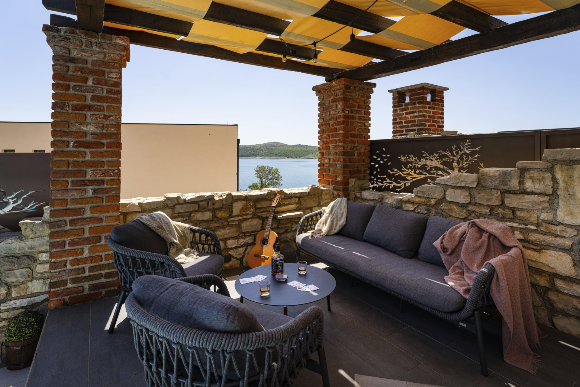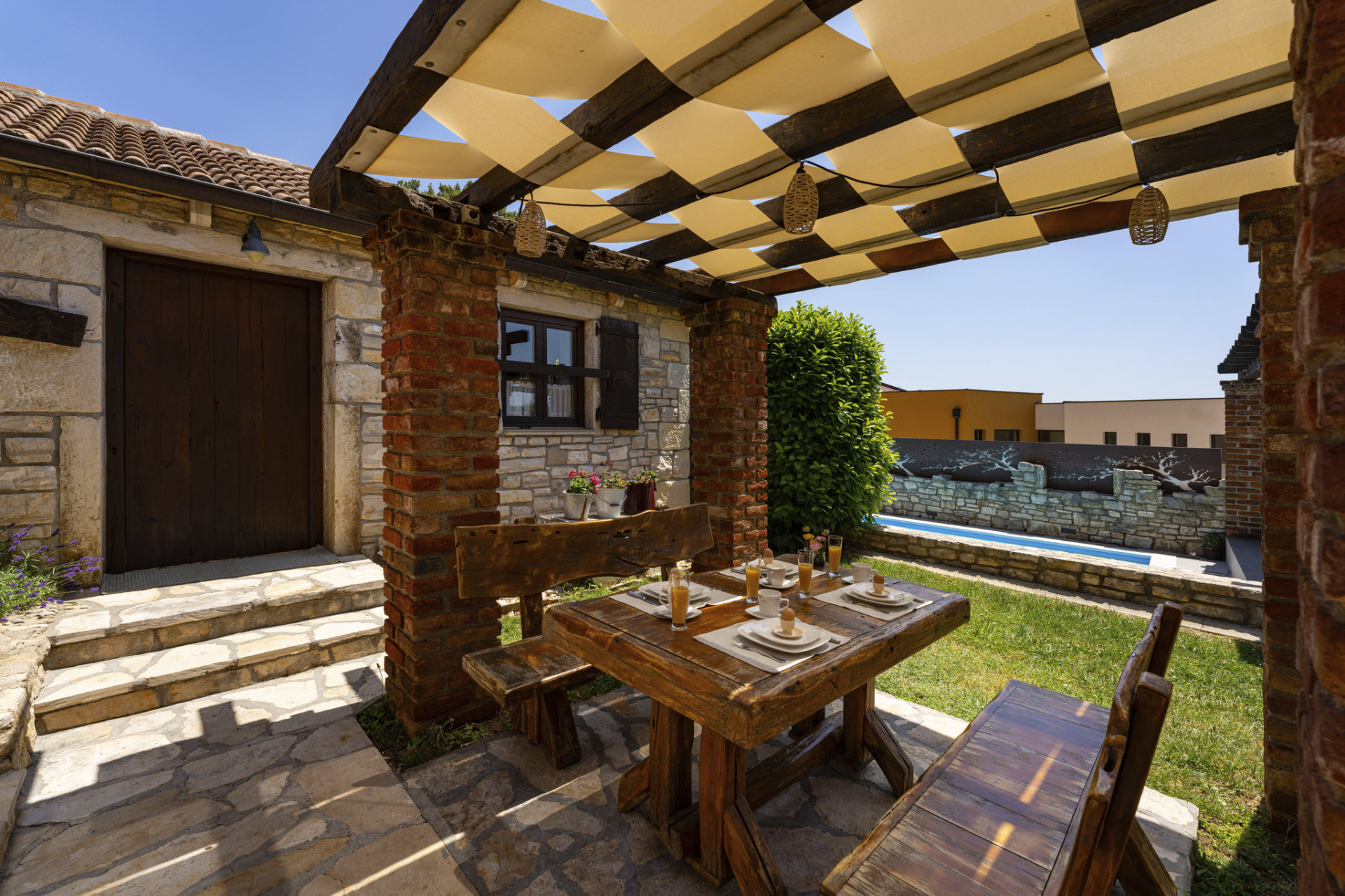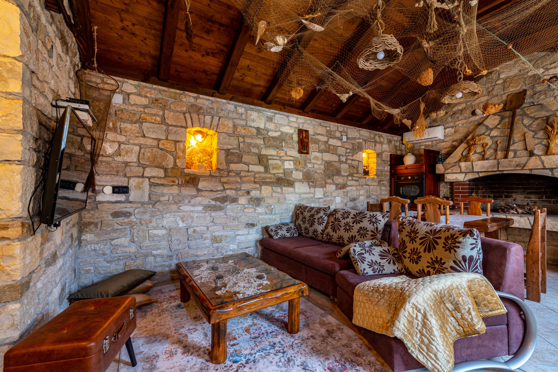 This 2-bedroom villa has a maximum capacity of six people. Both bedrooms have a double bed and a private bathroom. The stone design exudes a traditional style, enriched with wooden decor.