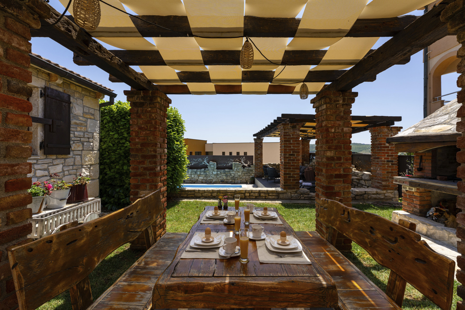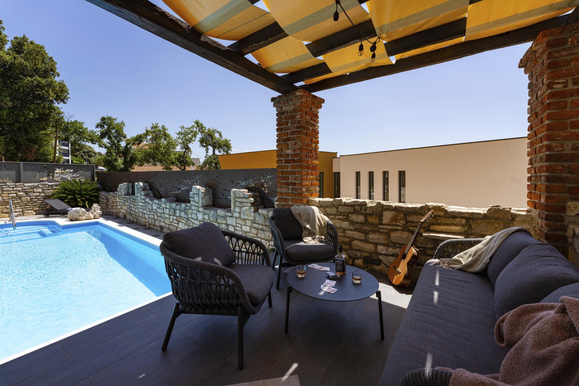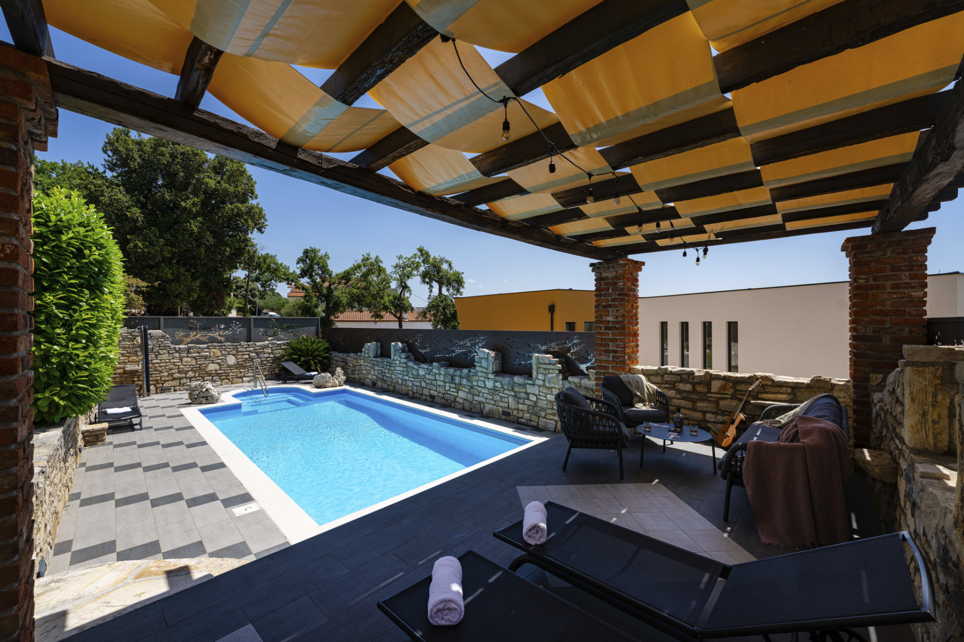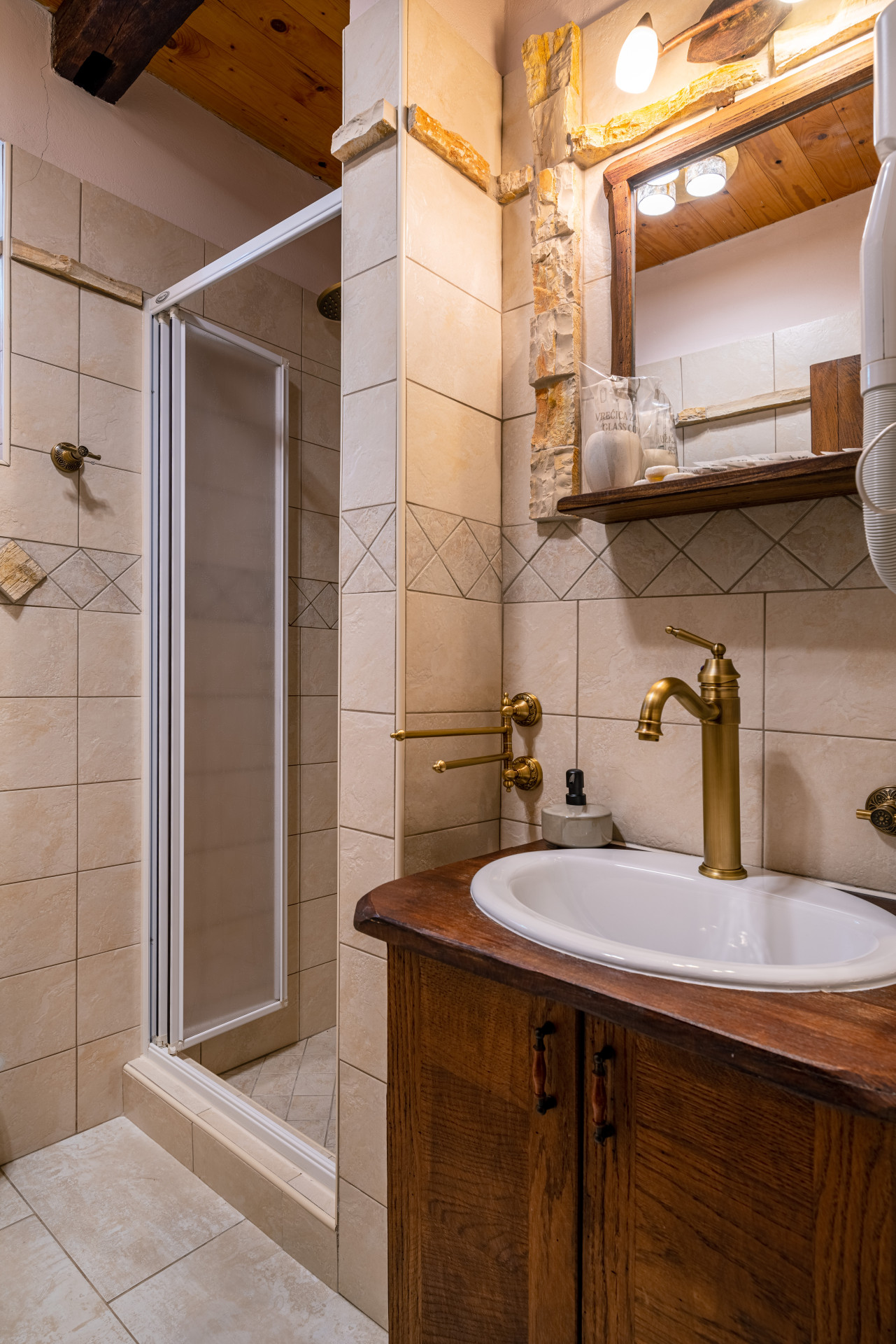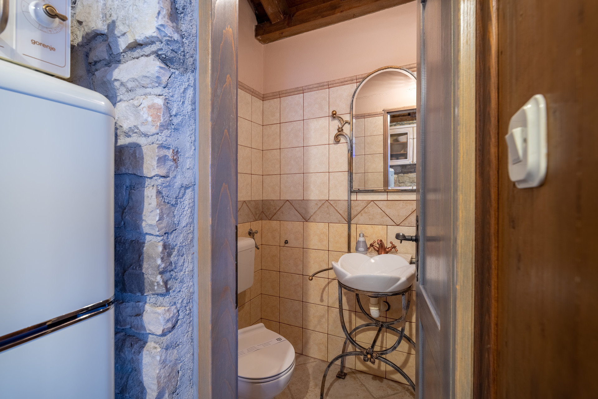 This 2-bedroom villa has a maximum capacity of six people. Both bedrooms have a double bed and a private bathroom. The stone design exudes a traditional style, enriched with wooden decor.