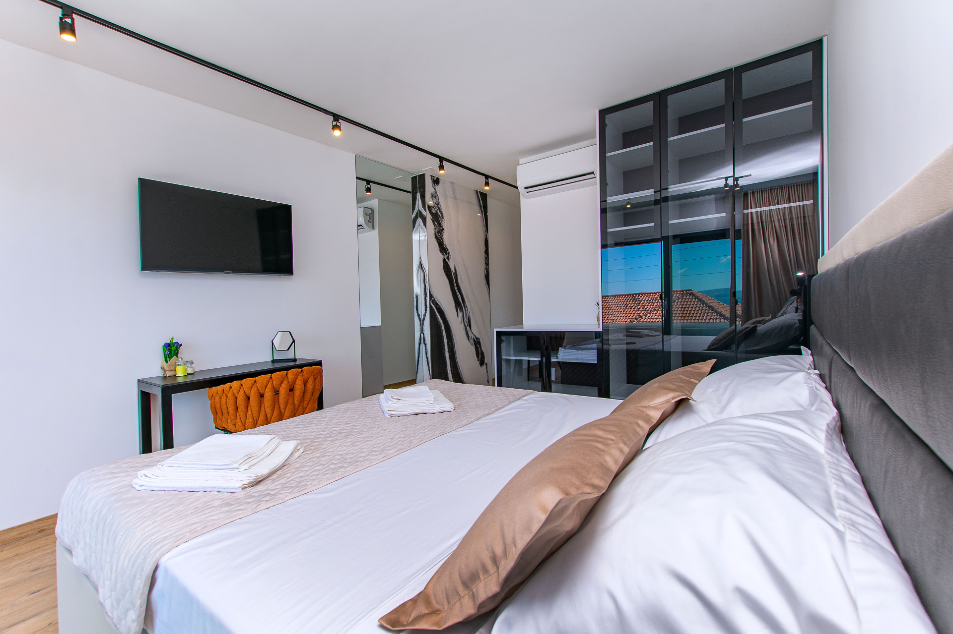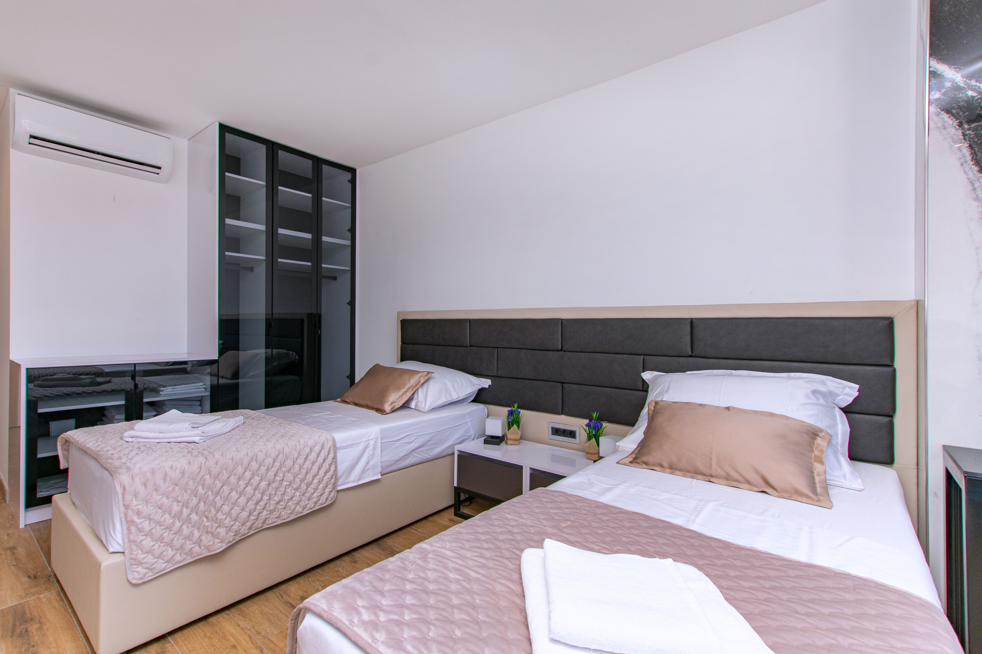Villa Leona XXL extends over four floors and can accommodate up to 20 people. The villa's first floor has five modern bedrooms, four of which have private bathrooms. On the villa's second floor, there are four bedrooms, each with its own bathroom and a large double bed, while one room enjoys the luxury of the third floor with a jacuzzi on the balcony.