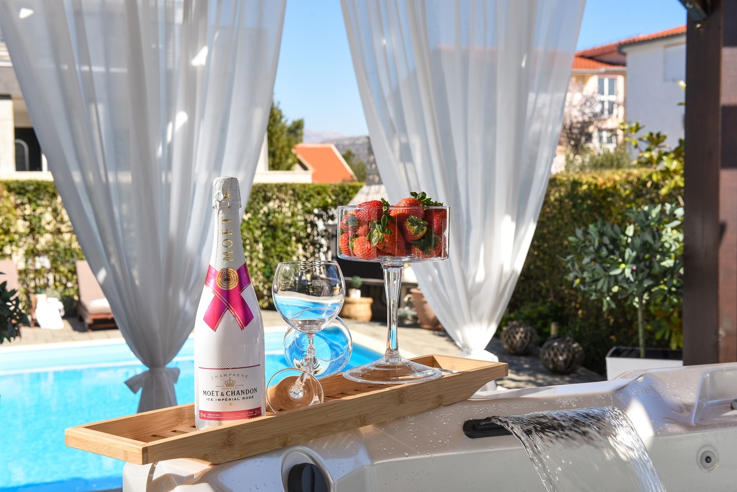 Villa Monty features a lovely private pool and jacuzzi, as well as comfortable loungers around the pool.