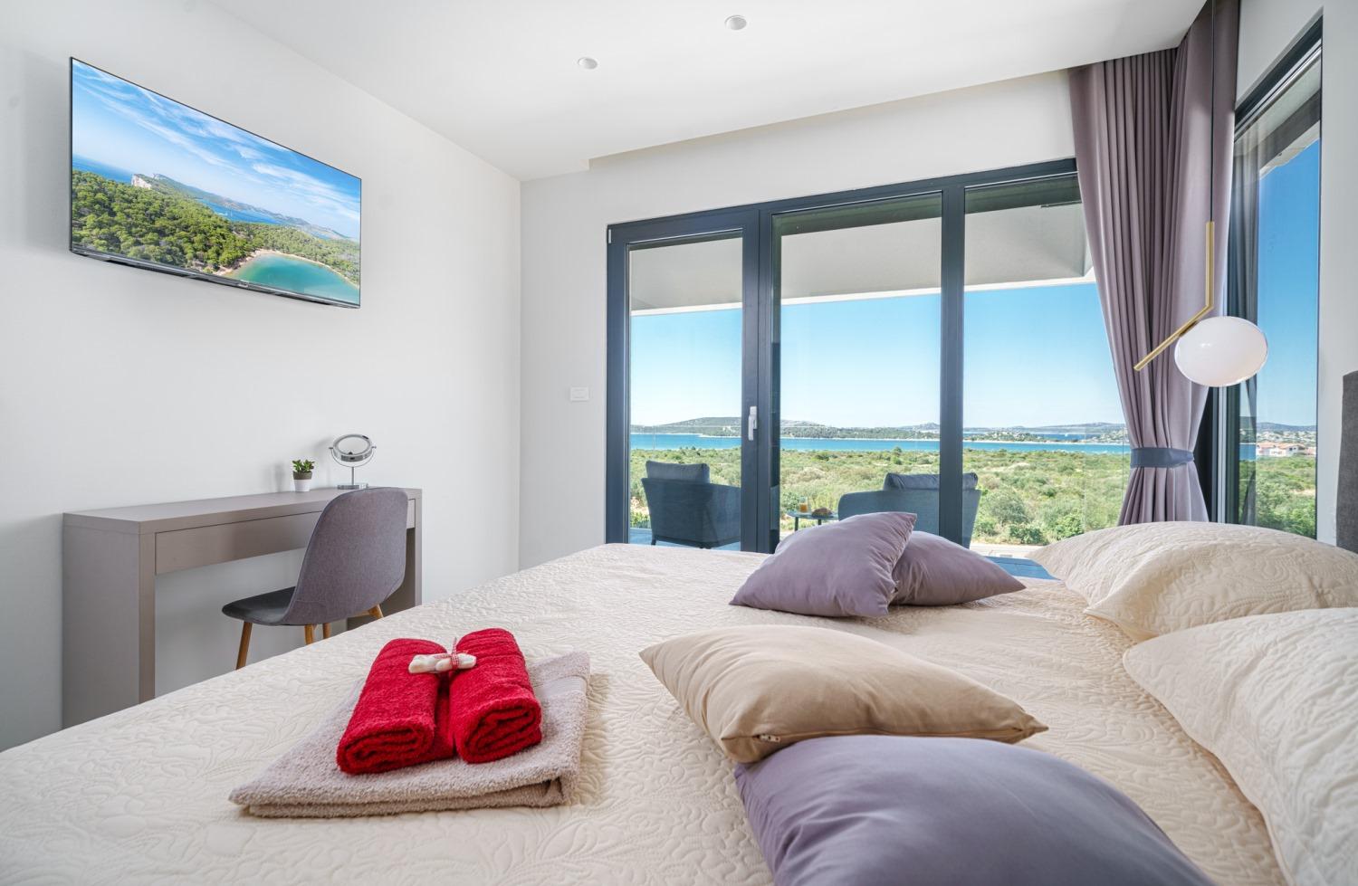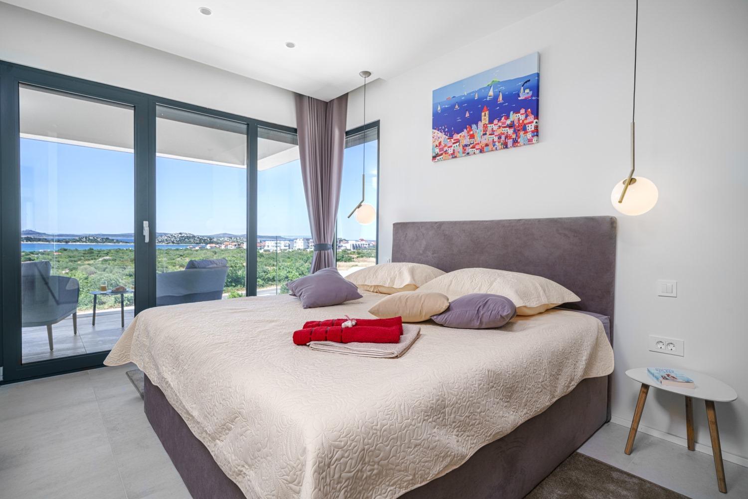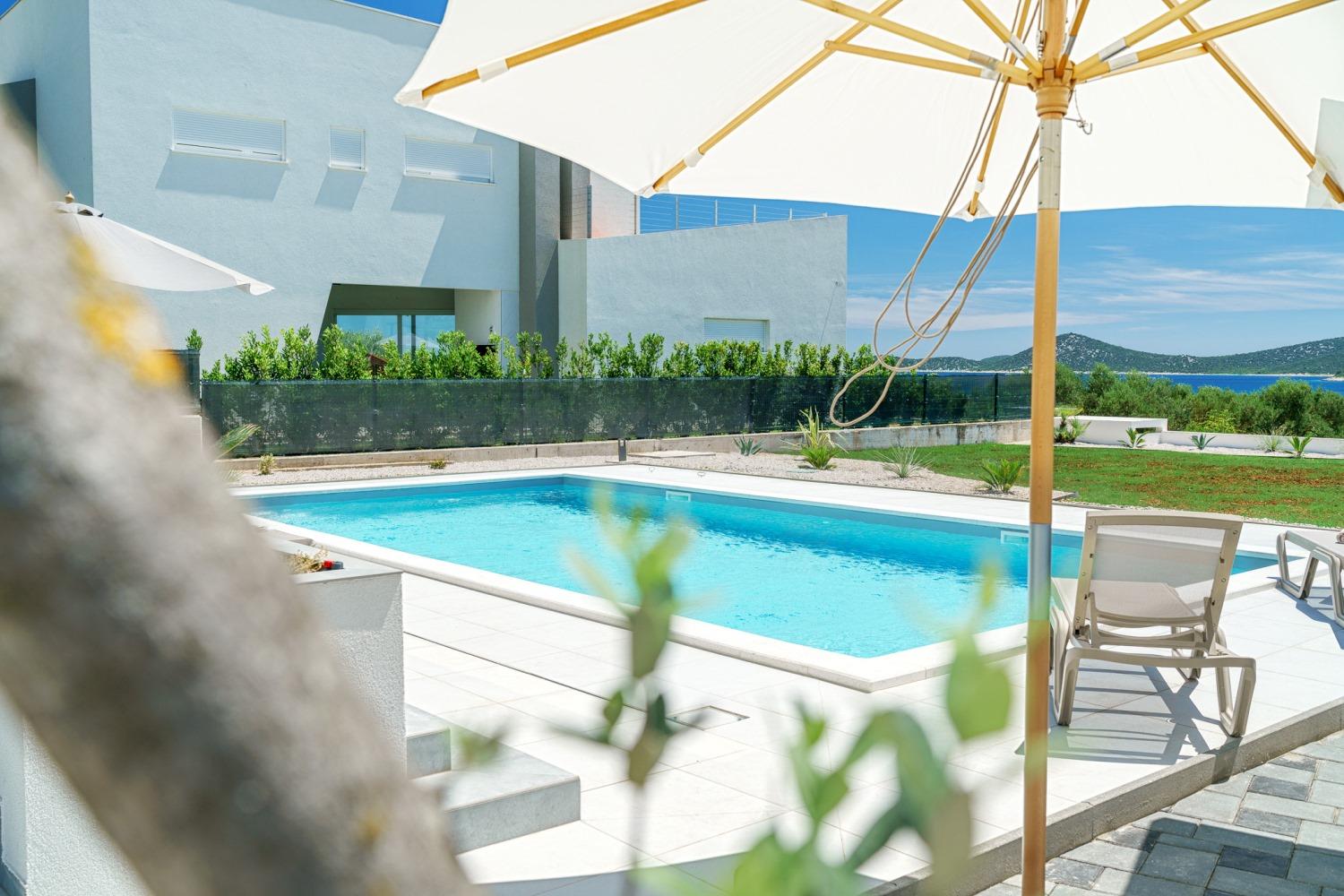 Spacious and modern villa Sea of Dreams is located between two famous tourist Dalmatian destinations: Tribunj and Vodice. Located in a Mediterranean environment, it offers its guests a beautiful sea view, privacy, and the vicinity of numerous amenities. With its 240 m2 of indoor space and 750 m2 of outdoor fully fenced yard, this villa is the right place to relax with family and friends.