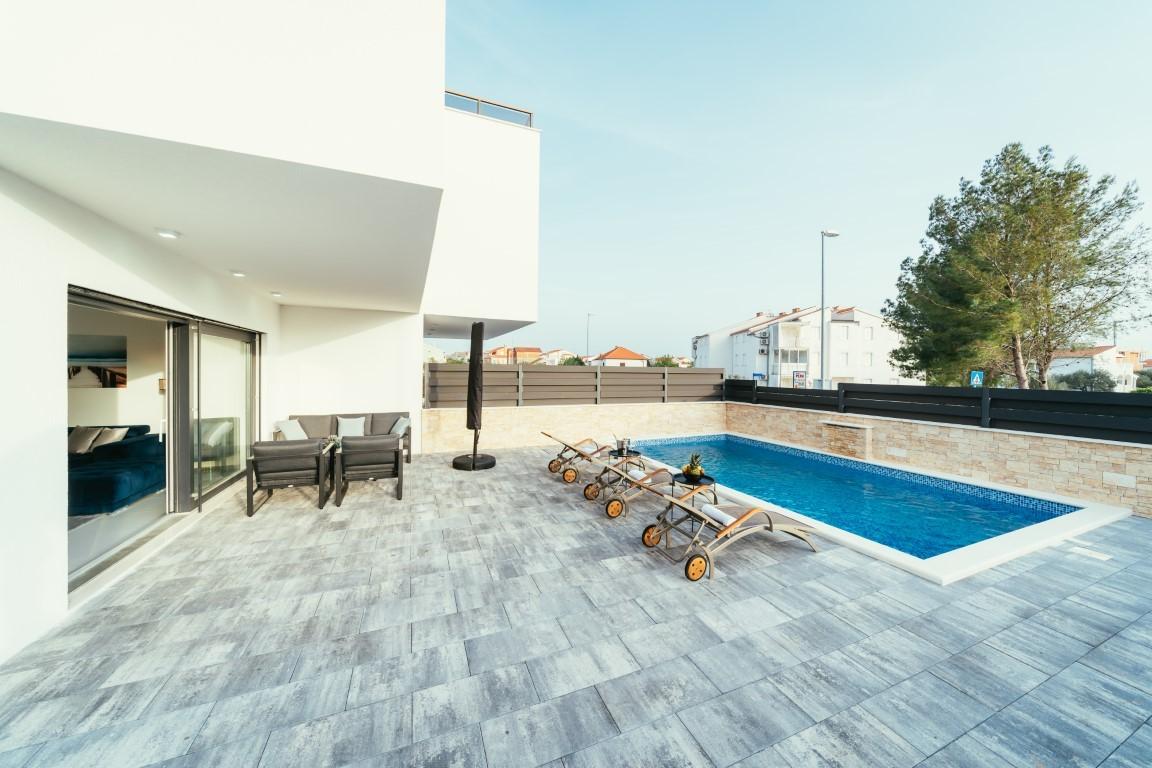 The luxurious villa Tina Srima is located in the small town Srima, a few kilometres away from the centre of Vodice. It is 200 m away from the beach and offers everything that guests need on holiday. Check out this nicely decorated villa if you want to enjoy a private pool or a Jacuzzi on the last floor terrace.